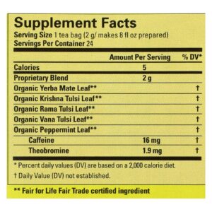 Ecoteas Organic Yerba Mate Unsmoked Green Energy Tea Bags – Case of 6 – 24 Bags