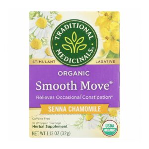 Traditional Medicinals Organic Smooth Move Chamomile Herbal Tea – 16 Tea Bags – Case of 6