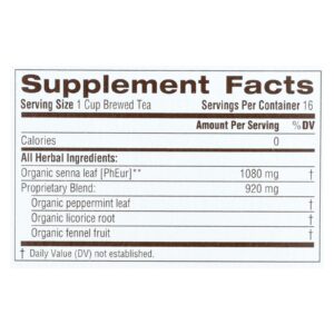 Traditional Medicinals Organic Senna Stimulant Laxative Tea – Caffeine Free – 16 Bags