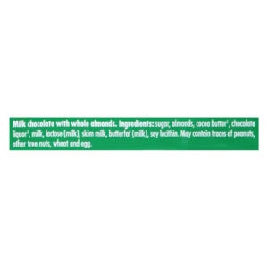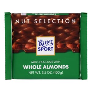 Ritter Sport Chocolate Bar – Milk Chocolate – Whole Almonds – 3.5 oz Bars – Case of 11