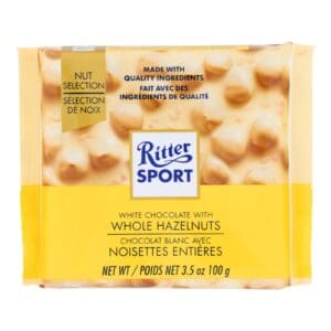 Ritter Sport Chocolate Bar – White Chocolate – Whole Hazelnuts – 3.5 oz Bars – Case of 10