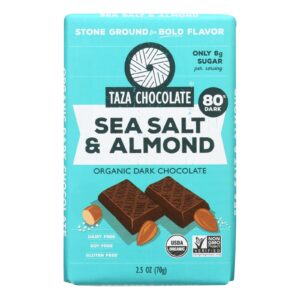 Taza Chocolate Stone Ground Organic Dark Chocolate Bar – Sea Salt and Almond – Case of 10 – 2.5 oz.