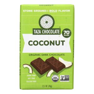 Taza Chocolate Stone Ground Organic Dark Chocolate Bar – Coco Besos Coconut – Case of 10 – 2.5 oz.