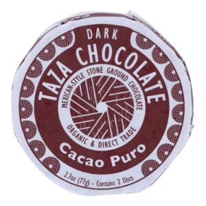 Taza Chocolate Organic Chocolate Mexicano Discs – 100 Percent Dark Chocolate – Cacao Puro – 2.7 oz – Case of 12