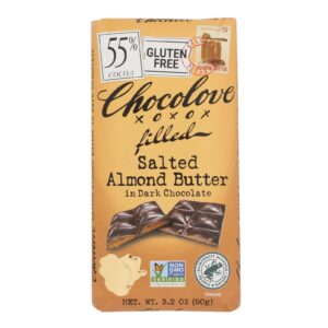 Chocolove Xoxox – Dark Chocolate Bar – Salted Almond Butter – Case of 10 – 3.2 oz