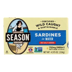 Season Brand Sardines in Water – No Salt Added – Case of 12 – 4.375 oz.