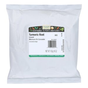 Frontier Herb Tumeric Root Ground Alleppey 5 Percent Curcumin – Single Bulk Item – 1LB