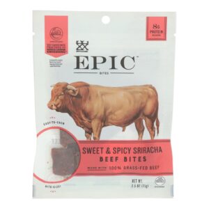 Epic – Jerky Bites – Sweet and Spicy Sriracha Tender Beef Steak – Case of 8 – 2.5 oz.
