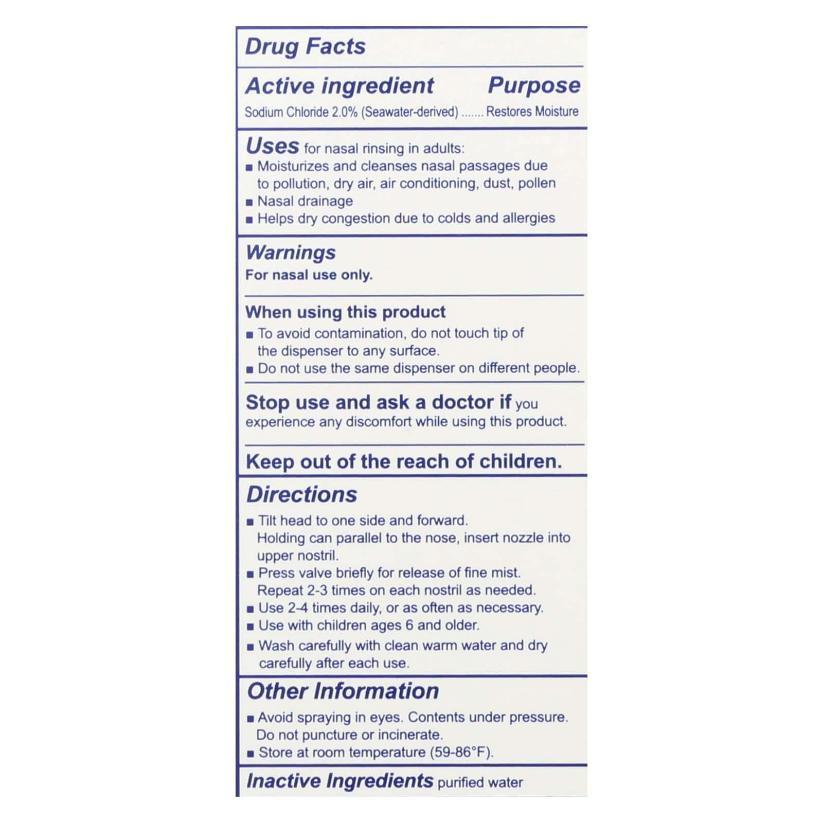 ANCIENT SECRETS NASAL RINSE, BREATHE AGAIN IS A STERILIZED, PRESERVATIVE-FREE SALINE THAT HELPS DRY CONGESTION DUE TO COLDS AND ALLERGIES. BREATHE AGAIN IS A EUROPEAN PRODUCT THAT CONSISTS OF NATURALLY SOURCED SEAWATER FROM THE ATLANTIC OCEAN. THIS SPRAY IS IDEAL FOR MOISTURIZING AND CLEANING NASAL PASSAGES DUE TO POLLUTION, DRY AIR, AIR CONDITIONING, DUST AND POLLEN. EACH CAN OF ANCIENT SECRETS NASAL RINSE, BREATHE AGAIN CONTAINS 3.38 FL. OZ. OF SIMPLE AND SAFE SPRAY. SEE LABEL FOR WARNINGS.