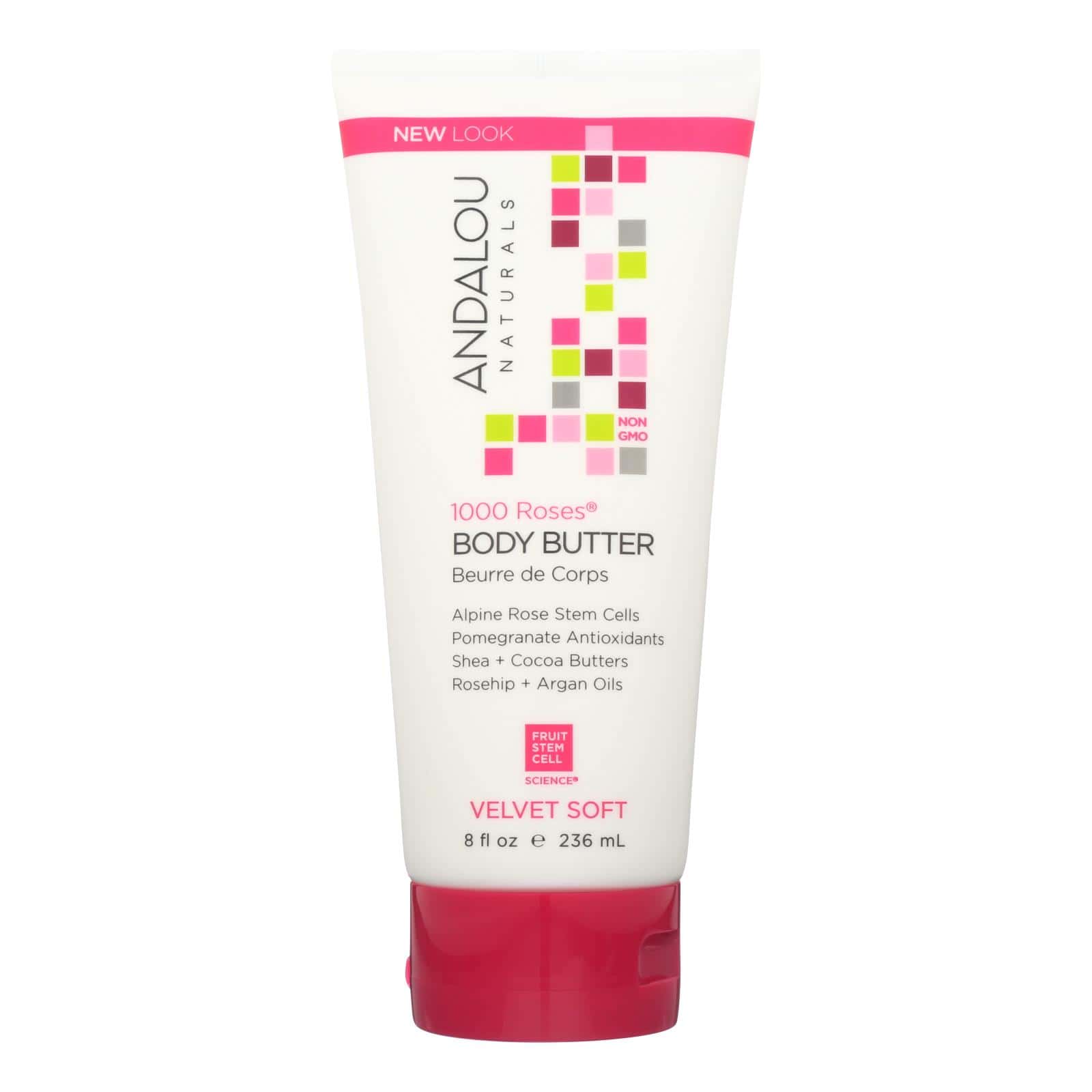 ANDALOU NATURALS SOFT BODY BUTTER, 1000 ROSES IS A LUXURIOUS PRODUCT DESIGNED TO PAMPER AND REJUVENATE YOUR SKIN?S HEALTH AND OVERALL APPEARANCE. MADE WITH NATURAL INGREDIENTS, ANDALOU NATURALS SOFT BODY BUTTER IS FREE OF UNNATURAL AND UNNECESSARY ADDITIVES. THIS PRODUCT IS GLUTEN-FREE, VEGAN FRIENDLY AND MANUFACTURED USING CRUELTY-FREE METHODS. EACH BOTTLE OF ANDALOU NATURALS SOFT BODY BUTTER, 1000 ROSES CONTAINS 8 FL. OZ. OF PRODUCT. SEE LABEL FOR WARNINGS.