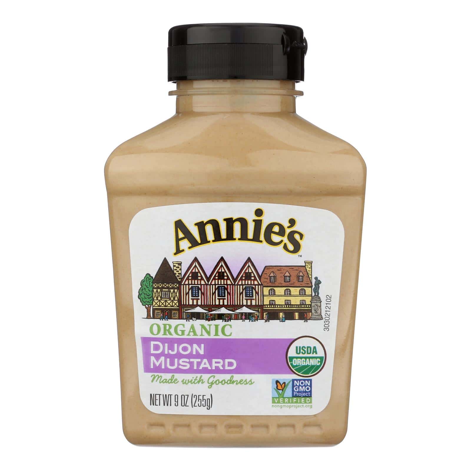 HOW TO DESCRIBE ANNIE?S NATURALS ORGANICS DIJON MUSTARD? CLASSIC, YET EXOTIC. FAMILIAR FLAVOR, YET WITH A GOURMET TASTE. ZESTY AND SHARP FROM INGREDIENTS LIKE DISTILLED WHITE VINEGAR, MUSTARD SEED, SEA SALT AND CLOVE. EVEN BETTER, YOU?LL GET A DISTINCT STONE-GROUND TEXTURE THAT ONLY ADDS TO THE FULL-BODIED FLAVOR OF THIS MUSTARD. OUR MUSTARD IS GLUTEN-FREE AND USDA-CERTIFIED ORGANIC. INCLUDES ONE 9 OZ. BOTTLE OF ANNIE’S NATURALS ORGANICS DIJON MUSTARD. ANNIE?S HAS A COMMITMENT TO BETTERING THE WORLD THROUGH NOURISHING FOODS, HONEST WORDS AND CONDUCT THAT IS CONSIDERATE AND KIND. FROM THE FARMS WE SOURCE OUR INGREDIENTS FROM ALL THE WAY TO THE PACKAGING OUR FOOD IS SHIPPED IN, WE ARE CONSCIOUS NOT ONLY OF YOUR FAMILY?S HEALTH AND WELLNESS, BUT THAT OF THE PLANET.