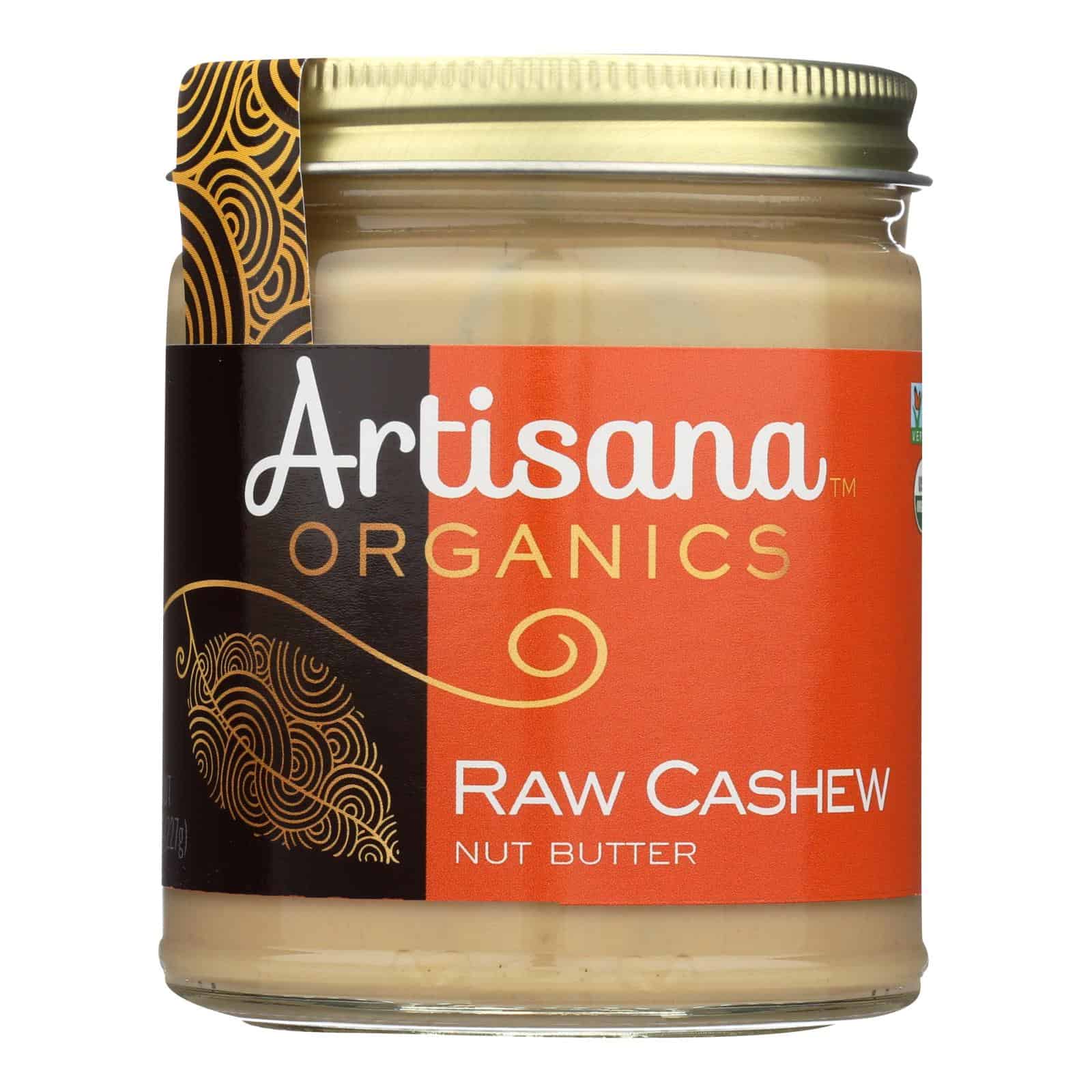 FOR OUR ARTISANA ORGANICS RAW CASHEW BUTTER, WE HAND SELECT ONLY THE FINEST NEW HARVEST NUTS, SEEDS AND COCONUT FOR OUR BUTTERS. THERE?S NOTHING HERE BUT PREMIUM RAW, ORGANIC CASHEWS. WE?VE BLENDED THEM INTO A CREAMY PUR?E WITH A RICH NATURAL FLAVOR THAT YOU?LL CRAVE STRAIGHT FROM THE JAR. TRY IT ON BREAD, IN SMOOTHIES, OR WITH NATURAL DESSERTS. IT?S A DELICIOUS WAY TO ADD ESSENTIAL PROTEIN, VITAMINS AND MINERALS TO ANY DIET. GREAT TASTE OR GREAT VALUE? WITH ARTISANA, IT’S EASY TO CHOOSE BOTH. SEE NUTRITION FACT PANEL FOR ALLERGENS. INCLUDES ONE 8 OZ. JAR OF ARTISANA ORGANICS RAW CASHEW BUTTER. CREATING UNIQUE, DELICIOUS, GOURMET FOOD IS A WORK OF PASSION FOR US, BLENDING TOGETHER NUTS AND SEEDS LIKE THE VIBRANT COLORS OF AN ARTIST?S PALETTE. HANDMADE WITH CARE, OUR ORGANIC FOODS ARE CRAFTED USING A TEMPERATURE CONTROLLED PROCESS.