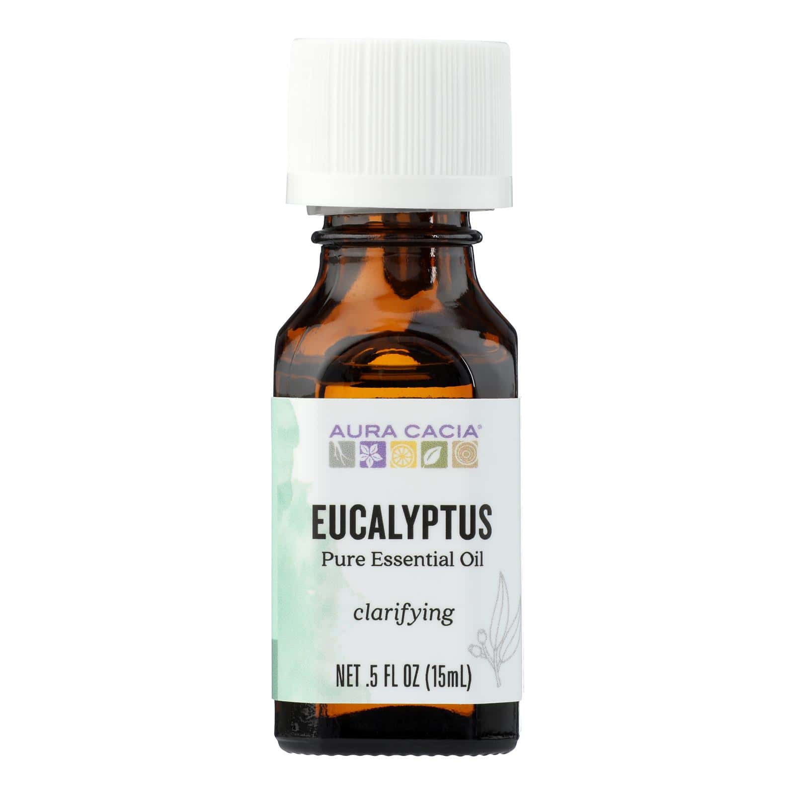 AURA CACIA ESSENTIAL OIL, EUCALYPTUS IS A FRESH, CAMPHOROUS OIL THAT HAS AN EXHILARATING PROPERTY. THIS REFRESHING AND PURIFYING OIL IS PERFECT IN AN INVIGORATING MIST. THIS 100% PURE ESSENTIAL OIL MUST BE DILUTED PROPERLY SINCE IT MAY IRRITATE THE SKIN. EACH BOTTLE OF AURA CACIA ESSENTIAL OIL, EUCALYPTUS CONTAINS 0.5 FL. OZ. OF PRODUCT. SEE LABEL FOR WARNINGS.