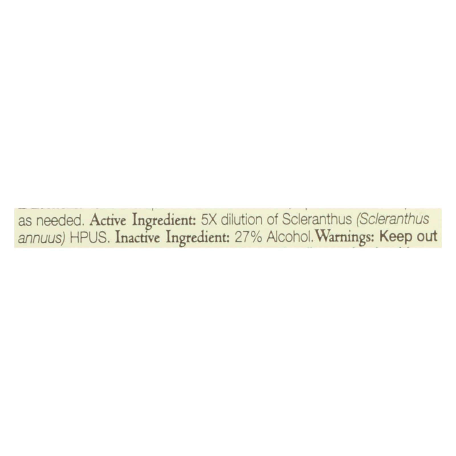 BACH SCLERANTHUS HOMEOPATHIC LIQUID EASES NATURALLY OCCURRING NERVOUS TENSION THANKS TO A DILUTED EXTRACT OF THE SCLERANTHUS ANNUUS PLANT. TAKE TWO DROPS IN MOUTH OR IN WATER, SIP AT INTERVALS, AND USE AS NEEDED. THIS 0.7 FL. OZ. BOTTLE CONTAINS 27% ALCOHOL, AND WE GUARANTEE YOUR SATISFACTION OR YOU RECEIVE A REFUND.