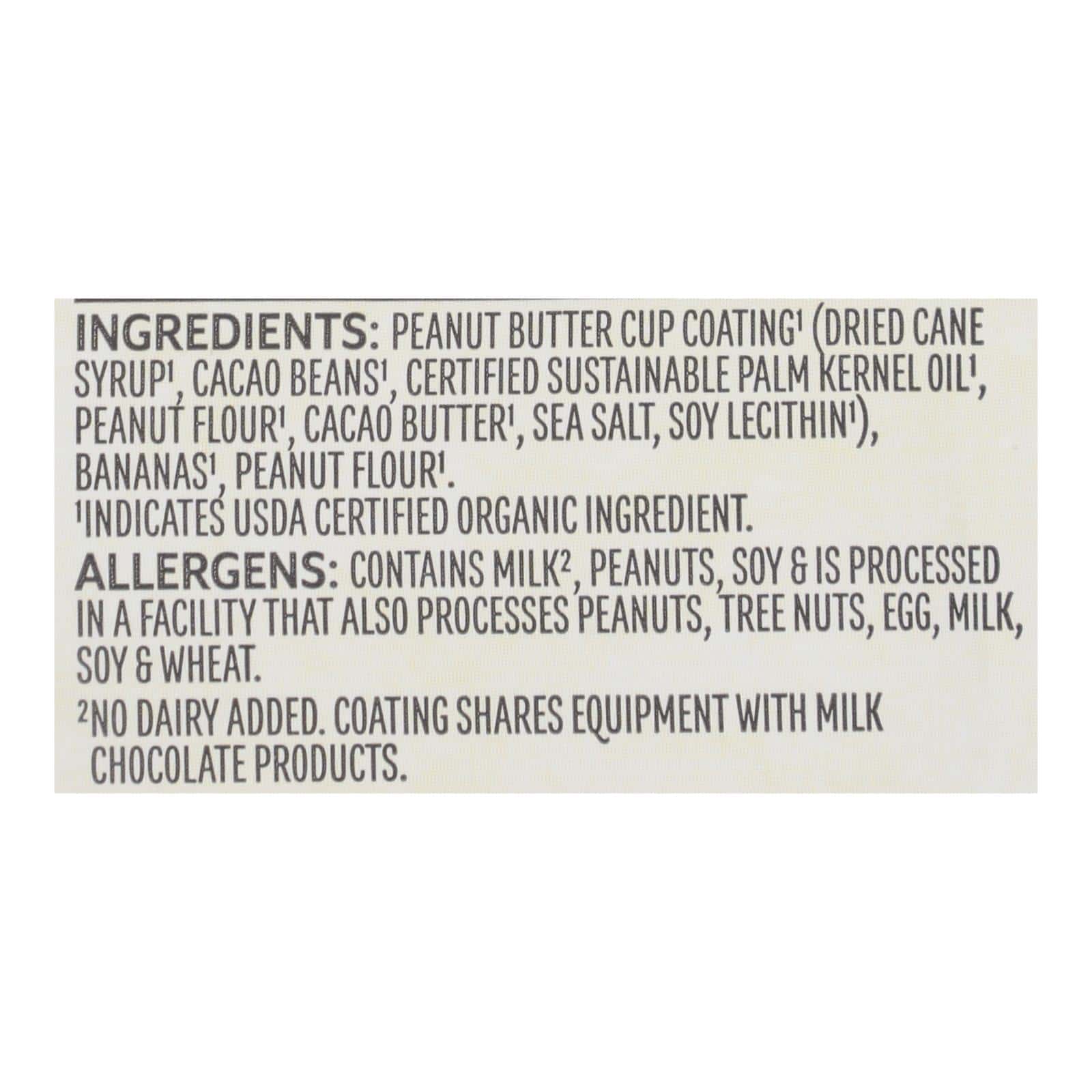 Dipped chewy banana bites. Gluten Free. USDA Organic. Certified Organic by QAI. Non GMO Project verified. nongmoproject.org. Dipped chewy banana bites. Totally cocoa PB & bananas! This is a dark chocolate peanut butter cup with bananas. And if that isn’t the most Bananas thing you’ve ever heard, then you must not be chewing loud enough. Product size and appearance may vary, contents may have Settled during shipping. Product is sold by weight, not by volume. Nutrient levels may vary. More banana for you. barnana.com. Follow us (at)barnana. Nana gear = 1 point. Collect to get Barnana gear or donate it! For more info barnana.com/gear. (hashtag)NanaGear. Certified B Corporation. Made from upcycled bananas. Scuffed up, too ripe, oddly shaped- bananas are delicious in all their shapes and sizes. Every year, millions of imperfect bananas go to waste at farms before ever making it to market. That’s why we take perfectly imperfect, good lookin’, good tastin’ bananas and turn them into tasty organic snacks. A win-win for the planet and your tastebuds. – Caue Suplicy, Founder.