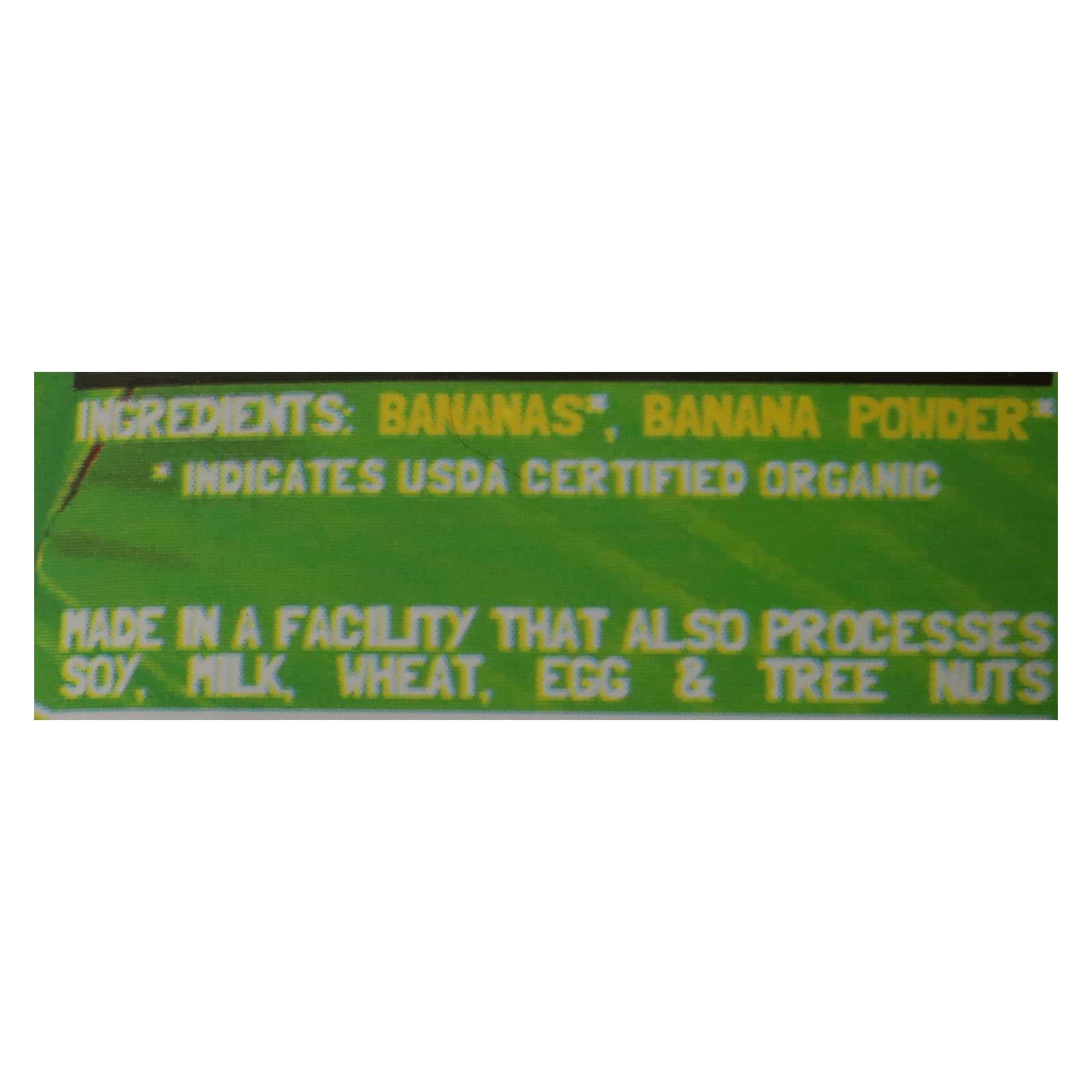 ORGANIC ORIGINAL CHEWY BANANA BITES HAS AN ORIGINAL FLAVOR THAT ARE BITE SIZE MAKIN IT EASY TO SNACK ON AND TO SHARE WITH OTHERS. WE DON?T JUDGE A BANANA BY ITS PEEL, WE TURN THESE BANANAS INTO A TASTY SNACKS AND SAVE THEM FROM GOING TO WASTE. THE PRODUCT IS MADE FROM UPCYCLED BANANAS, MANY BANANAS DON?T QUALIFY TO LEAVE THE FARM BECAUSE THE ARE NOT A PERFECT BUNCH. CHEWY BANANA! MINUS 80% WATER MADE WITH CERTIFIED SUSTAINABLE PALM OIL BY THE RSPO PEANUT BUTTER COATING CREAMY. CHEWY BANANA BITES COME IN A 3.5 OZ. BAG THAT MAKES IT EASY TO TAKE WITH YOU ON THE GO AND IT GIVES YOU A HEALTHY OPTION FOR A SNACK.