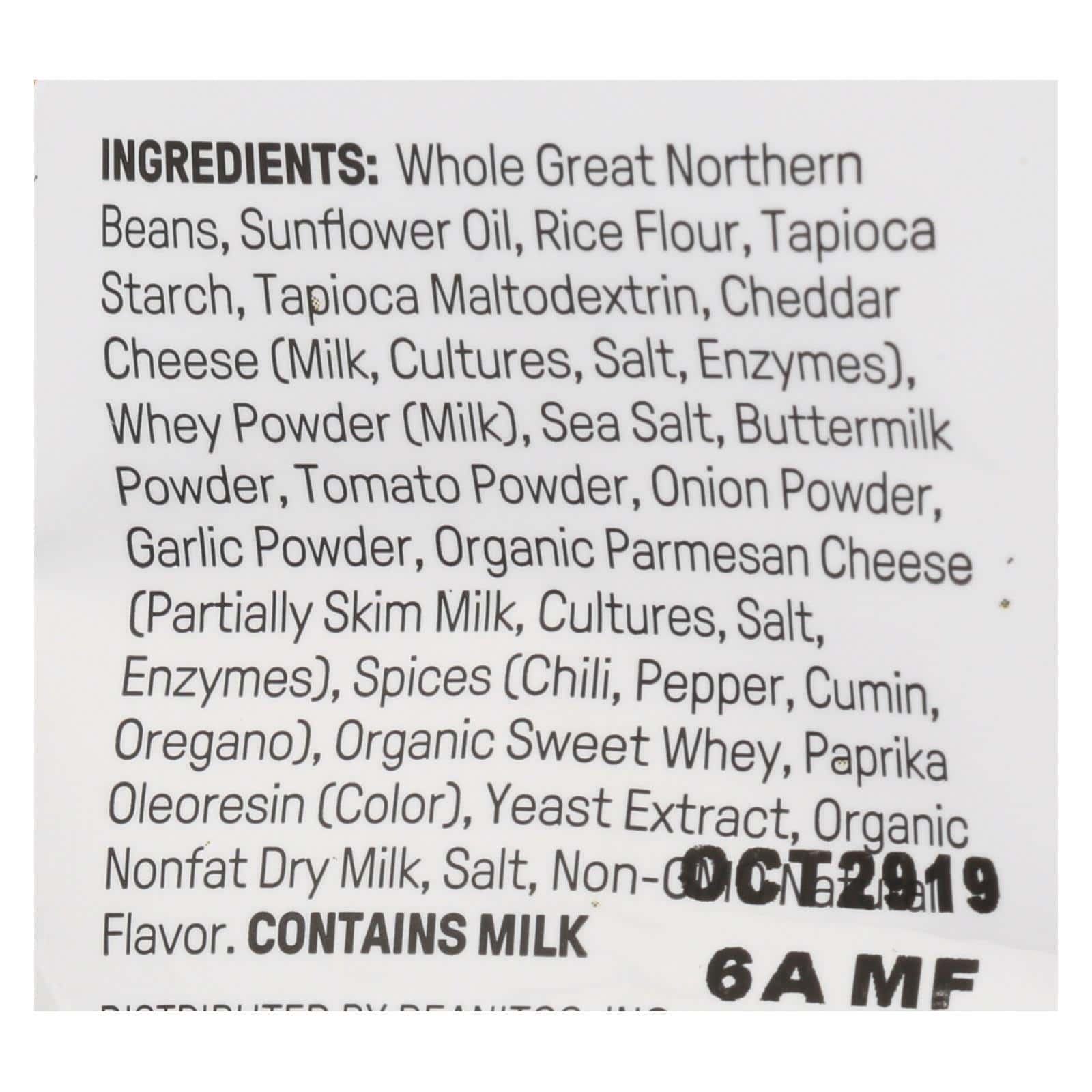 BEANITOS CHIPS, WHITE BEAN NACHO CHEESE ARE A SNACK YOU CAN FEEL GREAT ABOUT EATING. CRAFTED OF WHOLE NAVY BEANS, PURE SUNFLOWER OIL, LONG GRAIN RICE, SEA SALT, DELICIOUS SPICES AND SEASONINGS, THESE YUMMY CHIPS CONTAIN 5 G. OF COMPLETE PROTEIN PER SERVING ALONG WITH FIBER AND ANTIOXIDANTS. BEANITOS TURNED ONE OF THE WORLD’S FAVORITE SUPERFOODS INTO A PIQUANT FINGER FOOD WITH INFINITE SNACKING POSSIBILITIES. EACH BAG CONTAINS 6 OZ. OR 170 G OF MOUTH-WATERING CHIPS. SEE NUTRITION FACTS PANEL FOR ALLERGENS. THERE IS NOTHING ARTIFICIAL EVER IN THE BEANITOS FORMULA. WHOLESOME, THOROUGHLY ENJOYABLE SNACKING CAN BE YOURS AGAIN.