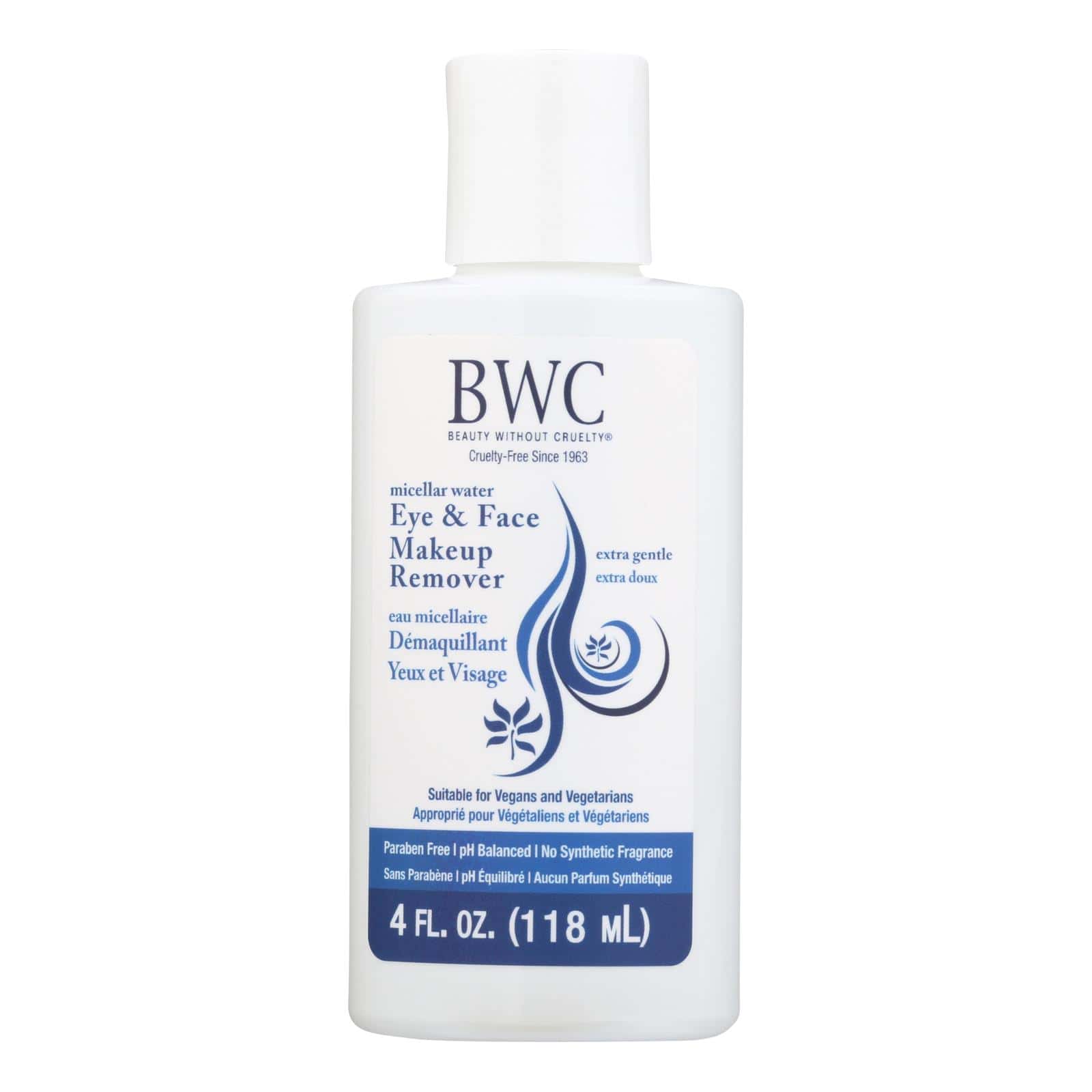 BWC Extra Gentle Eye Make-Up Remover with an herbal extract and vegetable glycerin gently removes all types of makeup, including water-resistant, completely and easily without irritation. Leaves no oily residue. Make-up can be re-applied immediately after use. 100% vegan, vegetarian. No animal testing.