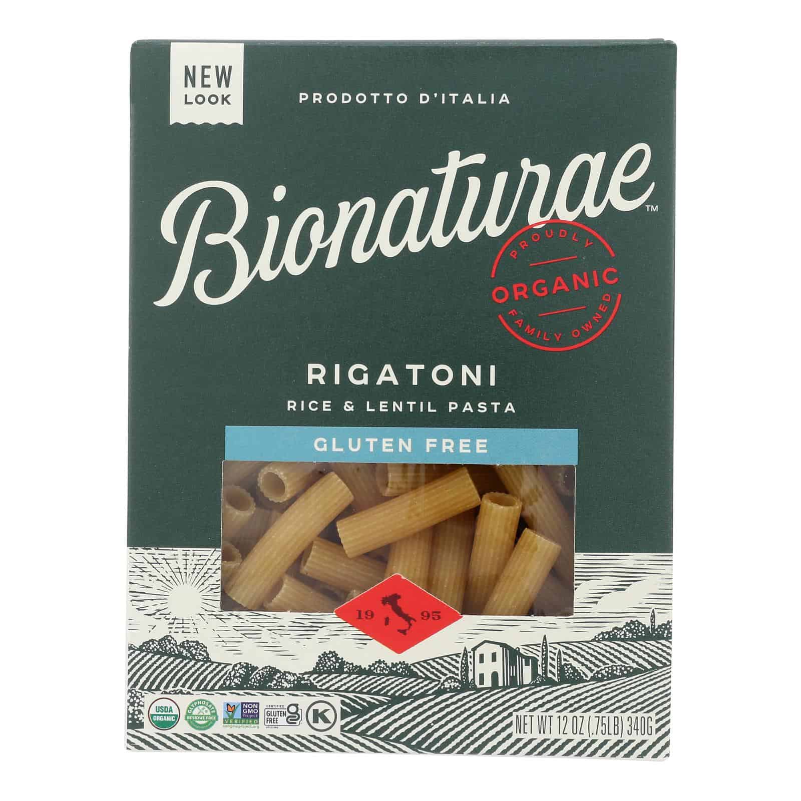 BIONATURAE GLUTEN-FREE RIGATONI IS MADE IN A DEDICATED GLUTEN-FREE FACILITY IN ITALY. THIS ORGANIC AND KOSHER PASTA IS MADE TO COOK ?AL DENTE? AND CLOSELY MATCH THE FLAVOR AND NUTRITIONAL CONTENT OF WHEAT PASTA. MAKE YOUR OWN HOMEMADE TOMATO SAUCE WITH BIONATURAE?S EXTRA VIRGIN OLIVE OIL AND TOMATO PRODUCTS FOR THE AUTHENTIC ITALIAN DINNER YOU?VE BEEN MISSING. EACH BAG OF BIONATURAE GLUTEN-FREE RIGATONI CONTAINS 12 OZ. OF GLUTEN-FREE AND DELICIOUS PASTA. SEE NUTRITION FACTS PANEL FOR ALLERGENS.