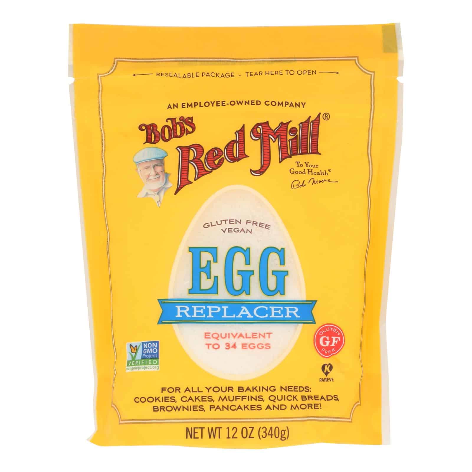 BOB’S RED MILL GLUTEN-FREE EGG REPLACER IS A VEGAN BAKING ESSENTIAL MADE WITH FOUR, POTATO STARCH, TAPIOCA FLOUR, BAKING SODA AND PSYLLIUM HUSK FIBER. THIS CONTAINS NO GRAINS, SOY, GLUTEN OR BEANS. IT’S SO EASY TO USE BY JUST ADDING WATER IN VARYING AMOUNTS DEPENDING ON IF YOU ARE REPLACING AN EGG WHITE, YOLK OR WHOLE EGG. WITH EACH PACKAGE CONTAINING THE EQUIVALENT OF 34 EGGS, IT’S AN ECONOMICAL CHOICE AS WELL. OUR EGG REPLACER IS CHOLESTEROL FREE, NATURALLY GLUTEN-FREE, VEGAN, KOSHER AND NON-GMOS. INCLUDES 12 OZ. PACKAGE OF EGG REPLACER. SEE NUTRITION FACTS PANEL FOR ALLERGENS. BOB?S RED MILL IS PROUD TO BE AN EMPLOYEE OWNED COMPANY. WE HONOR THE INNATE PERFECTION OF SIMPLE FOODS.