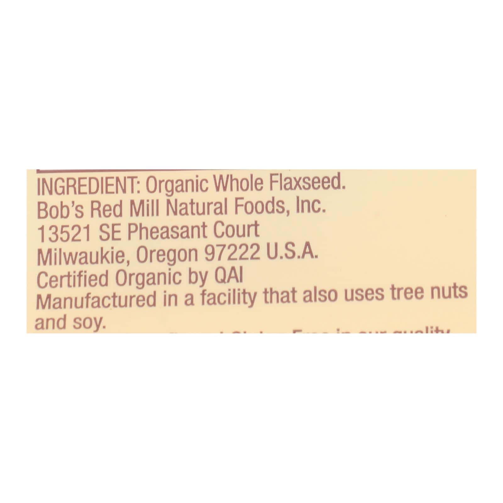 BOB?S RED MILL ORGANIC WHOLE FLAXSEED IS A WHOLESOME FOOD THAT PROVIDES NUTRIENTS THAT ARE ESSENTIAL TO HEALTH. THIS FOOD HAS BEEN TESTED AND CONFIRMED TO BE GLUTEN-FREE IN OUR QUALITY CONTROL LABORATORY. IT IS ALSO 100% USDA ORGANIC AND NOT GENETICALLY MODIFIED. THE WHOLE FLAXSEEDS CAN BE SPRINKLED WHOLE ONTO TOAST, CRACKERS, SALAD OR GROUND IN A BLENDER TO A FINE MEAL WHICH CAN BE ADDED TO SMOOTHIES, HOT CEREAL, YOGURT AND MORE. EACH SERVING CONTAINS 8 GRAMS OF FIBER AND 5790 MG. OF OMEGA-3. SEE NUTRITION FACTS PANEL FOR ALLERGENS. INCLUDES 13 OZ. PACKAGE OF WHOLE FLAXSEED. BOB?S RED MILL IS PROUD TO BE AN EMPLOYEE OWNED COMPANY. WE HAVE TAKEN THE SOURCED NON-GMO PLEDGE AND HONOR THE INNATE PERFECTION OF SIMPLE FOODS.
