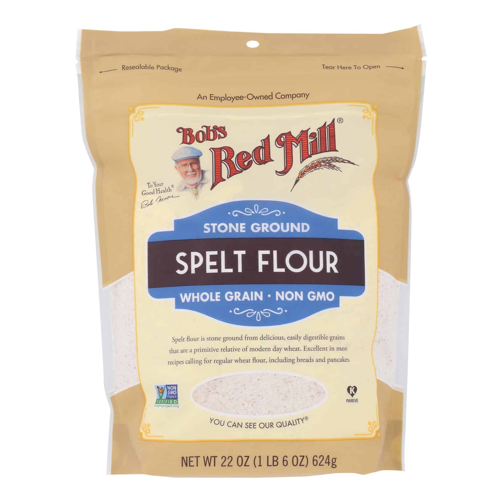 Whole grain. Non GMO. Non GMO Project verified. nongmoproject.org. An employee-owned company. To your good health. Spelt Flour is stone ground from delicious, easily digestible grains that are a primitive relative of modern day wheat. Excellent in most recipes calling for regular wheat flour, including breads and pancakes. You can see our quality. Dear friends, At Bob’s Red Mill, we take great pleasure in bringing wholesome foods like whole grain spelt flour to your table. We search the world for unique and unusual heirloom grains that you can use to forge new culinary adventures – right in your own kitchen! Rely on us for a wide variety of baking flours, grains and mixes you’ll feel good about eating. To your good health, – Bob Moore. bobsredmill.com. For information and recipes, visit bobsredmill.com Resealable package.