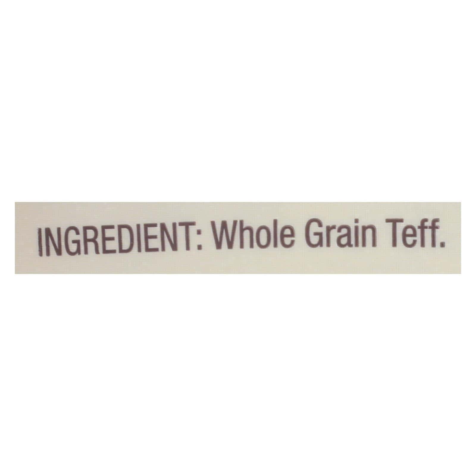 100% Whole grain. 35 or more per serving. 100% of the grain is whole grain. wholegrainscouncil.org. Tested and confirmed Gluten Free in our quality control laboratory. Non GMO Project Verified. nongmoproject.org. An employee-owned company. To your good health. – Bob Moore. Our whole grain Teff Flour is made from the smallest grain in the world. This gluten free ancient grain originated in North Africa and has a light, nutty flavor. Use it to make injera, the traditional Ethiopian flatbread, or in baked goods like cookies, brownies and muffins. You can see our quality. Dear Friends, At Bob’s Red Mill, we take great pleasure in bringing wholesome, delicious foods like Whole Grain Teff Flour to your table. We search the world for unique and unusual heirloom grains that you can use to forge new culinary adventures – right in your own kitchen! Rely on us for a wide variety of baking flours, grains and mixes you’ll feel good about eating. To your good health, – Bob Moore. nongmoproject.org. wholegrainscouncil.org. bobsredmill.com. For more information and recipes, visit bobsredmill.com. Resealable package.