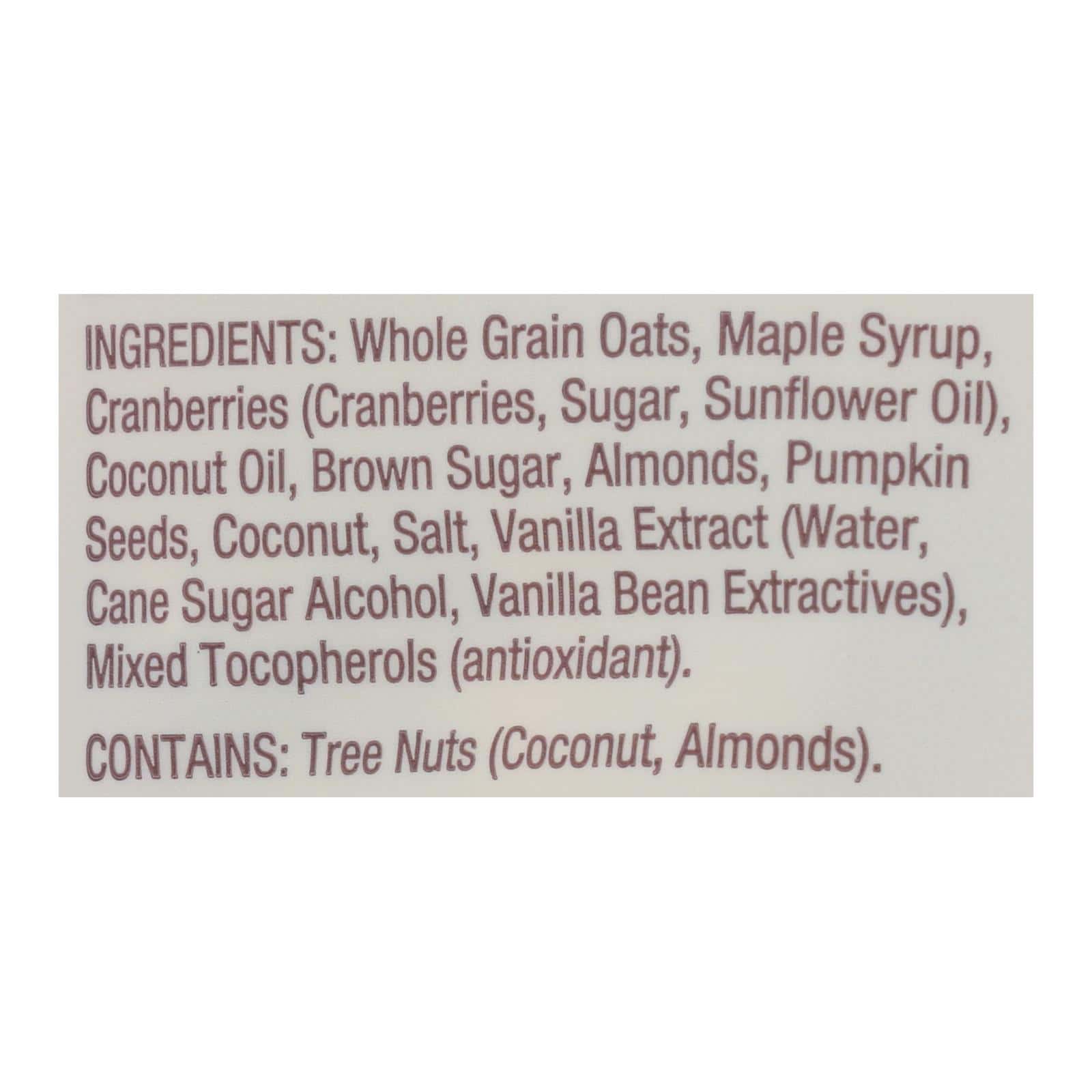 Gluten free. Reason to Love Our Granola: Certified Gluten-Free. 50%+ Whole Grain: 13 g or more per serving. 50% or more of the grain is whole grain. WholeGrainsCouncil.org. Non GMO. Non GMO Project verified. nongmoproject.org. Made with whole grain oats and real maple syrup. A whole grain snack. To Your Good Health. An employee-owned company. Dear friends, perfectly crispy. Toasted. Golden brown. This granola is just spectacular! When we came up with the recipe, we went back to basics – a handful of simple ingredients, including whole grain oats, real maple syrup and sweet cranberries, pan-baked to delicious perfection. The end result? Crunchy clusters that are rich in flavor (but not too sweet) and taste just like they came out of your own oven at home. It’s all part of our mission to bring whole grain foods for every meal of the day. To your good health, – Bob Moore. BobsRedMill.com. For more information and recipes, visit BobsRedMill.com. Resealable package.