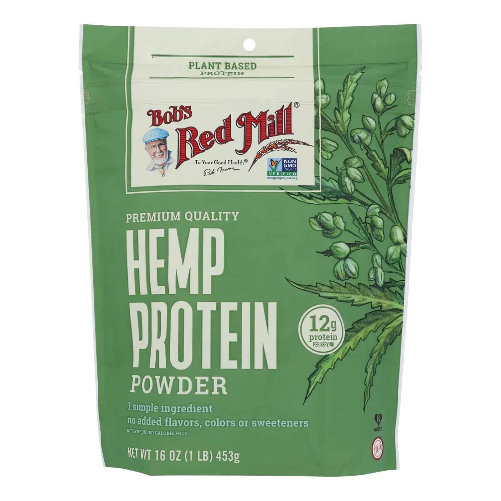 BOB?S RED MILL HEMP PROTEIN POWDER PROVIDES HIGH QUALITY PLANT-BASED PROTEIN, CONTAINING ALL THE ESSENTIAL AMINO ACIDS. WITH NO ADDED FLAVORS, COLOR OR SWEETENERS, OUR HEMP PROTEIN POWDER IS ONE OF THE PUREST HEMP SUPPLEMENTS IN THE WORLD. IT BLENDS WELL, SO IT?S PERFECT FOR SHAKES AND SMOOTHIES. FOR A WHOLESOME PROTEIN BOOST, ADD TO BAKED GOODS OR OATMEAL. BOB?S RED MILL BELIEVES IN PRESERVING NUTRITION THROUGH THE TRADITION OF OLD WORLD QUARTZ STONE MILLING. INCLUDES ONE 16 OZ. BAG. SEE NUTRITION FACTS PANEL FOR ALLERGENS.