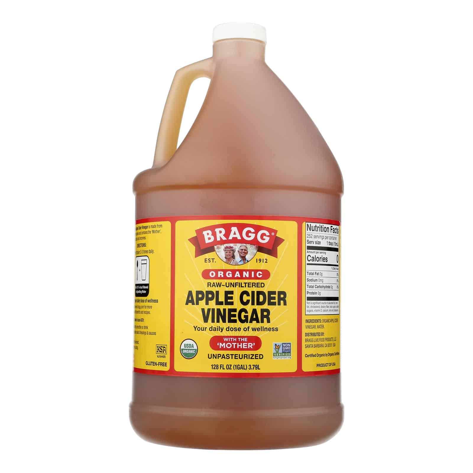 BRAGG ORGANIC RAW UNFILTERED APPLE CIDER VINEGAR IS MADE FROM THE FINEST GROWN APPLES TO ENSURE TOP QUALITY. THIS VINEGAR INCLUDES THE “MOTHER,” WHICH CONTAINS ENZYMES THAT ARE NOTED FOR THEIR NATURAL CLEANSING AND HEALTH-ENHANCING PROPERTIES. ADD THIS VINEGAR TO DRESSINGS, SAUCES, VEGETABLES AND FOODS FOR ADDED ZEST AND FLAVOR, OR ADD A FEW TEASPOONS TO A GLASS OF WATER FOR A PICK ME UP. EACH BOTTLE CONTAINS 128 FL. OZ.