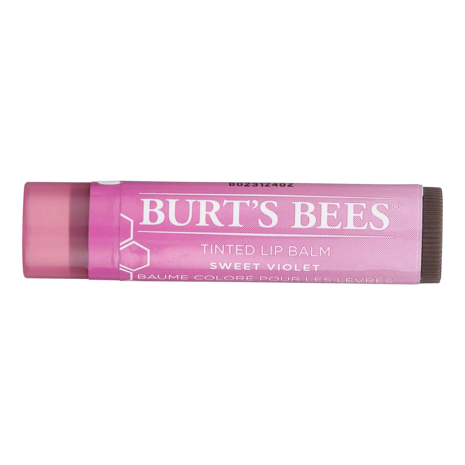 BURT’S BEES SWEET VIOLET TINTED LIP BALM GIVES YOUR LIPS A LAYER OF PROTECTION WITH A HINT OF COLOR. A MEDLEY OF NATURAL CONDITIONERS LIKE COCONUT OIL, BEESWAX AND SHEA BUTTER COMBINE FOR MOISTURE-RICH HYDRATION ON YOUR LIPS. THE COLOR LEAVES A BRIGHT ROSY PINK SHINE. IT?S 100% NATURAL AND NEVER TESTED ON ANIMALS. INCLUDES ONE 0.15 OZ. TUBE OF BURT’S BEES SWEET VIOLET TINTED LIP BALM. BURT’S BEES CREATES NATURAL, EARTH-FRIENDLY PERSONAL CARE PRODUCTS. WE’RE PROUD THAT OVER HALF OF OUR 150+ PRODUCTS ARE 100% NATURAL. OUR PRODUCTS ARE CAREFULLY CRAFTED USING INGREDIENTS THAT ARE THE BEST NATURE HAS TO OFFER: BEESWAX, BOTANICAL AND ESSENTIAL OILS, HERBS, FLOWERS AND MINERALS.