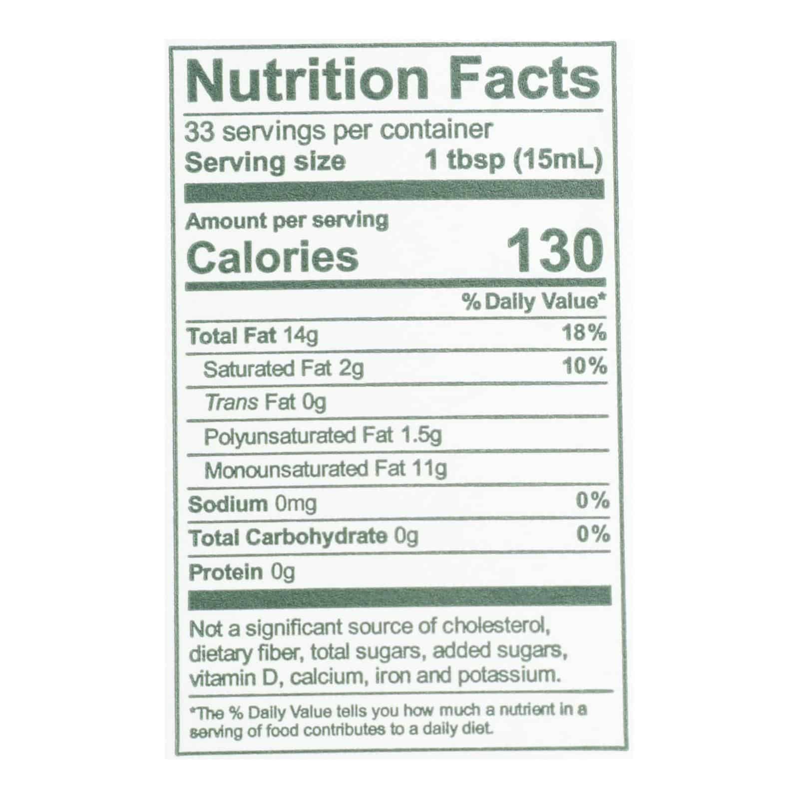 CALIFORNIA OLIVE RANCH EXTRA VIRGIN OLIVE OIL, ARBEQUINA IS A FRESH AND FRUITY OIL WITH MANY USES. THIS KOSHER, NON-GMO, CALIFORNIA-GROWN OLIVE OIL HAS BEEN CERTIFIED EXTRA VIRGIN BY THE CALIFORNIA OLIVE OIL COUNCIL. LIKE FINE WINE, NATURAL FRUIT SEDIMENT MAY OCCUR. EACH BOTTLE OF CALIFORNIA OLIVE RANCH EXTRA VIRGIN OLIVE OIL, ARBEQUINA CONTAINS 500 ML. (16.9 FL. OZ.) OF PRODUCT.