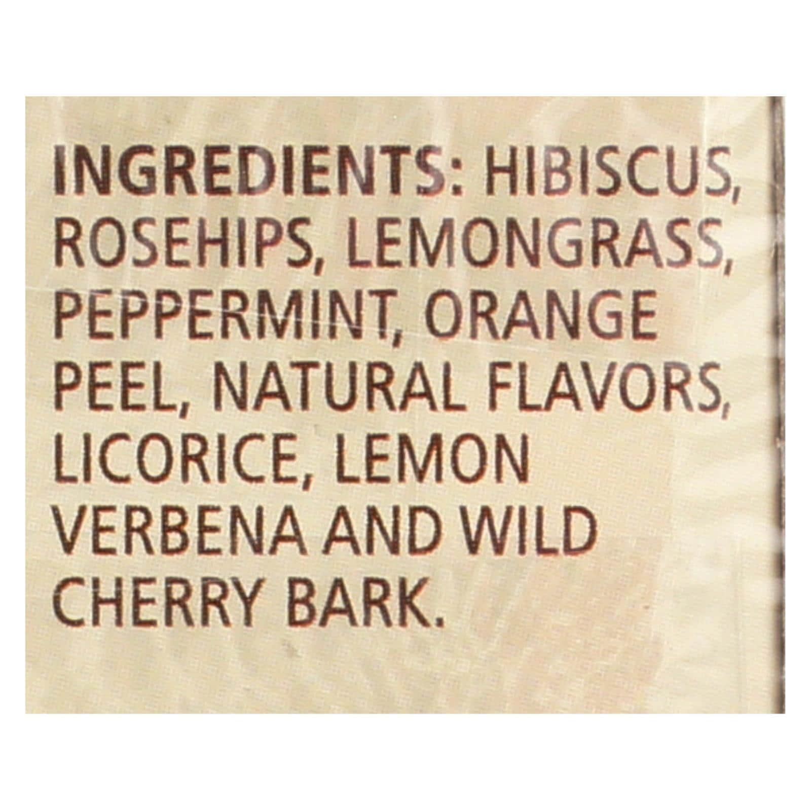 CELESTIAL SEASONINGS HERBAL TEA, RED ZINGER IS A UNIQUELY FLAVORED, NATURALLY CAFFEINE FREE TEA. IT IS A LIVELY HERBAL TEA WITH HIBISCUS, ROSEHIPS, LEMONGRASS, PEPPERMINT, ORANGE PEEL, LEMON VERBENA AND WILD CHERRY BARK. THIS ROBUST HERBAL BREW GETS ITS AROMA AND TART-TANGY FLAVOR FROM FRUITY HIBISCUS, BALANCED BY COOL PEPPERMINT AND REFRESHING WILD CHERRY BARK. IT IS GLUTEN-FREE AND KOSHER. IT DOES NOT CONTAIN ARTIFICIAL COLORS, FLAVORS OR PRESERVATIVES. TRY IT BOTH WARM AND OVER ICE. EACH BOX CONTAINS 20 TEABAGS. SEE NUTRITION FACTS PANEL FOR ALLERGENS. YOU’LL LOVE THE AROMA AS MUCH AS THE FLAVOR IN THIS RICH, LUXURIOUS TEA.