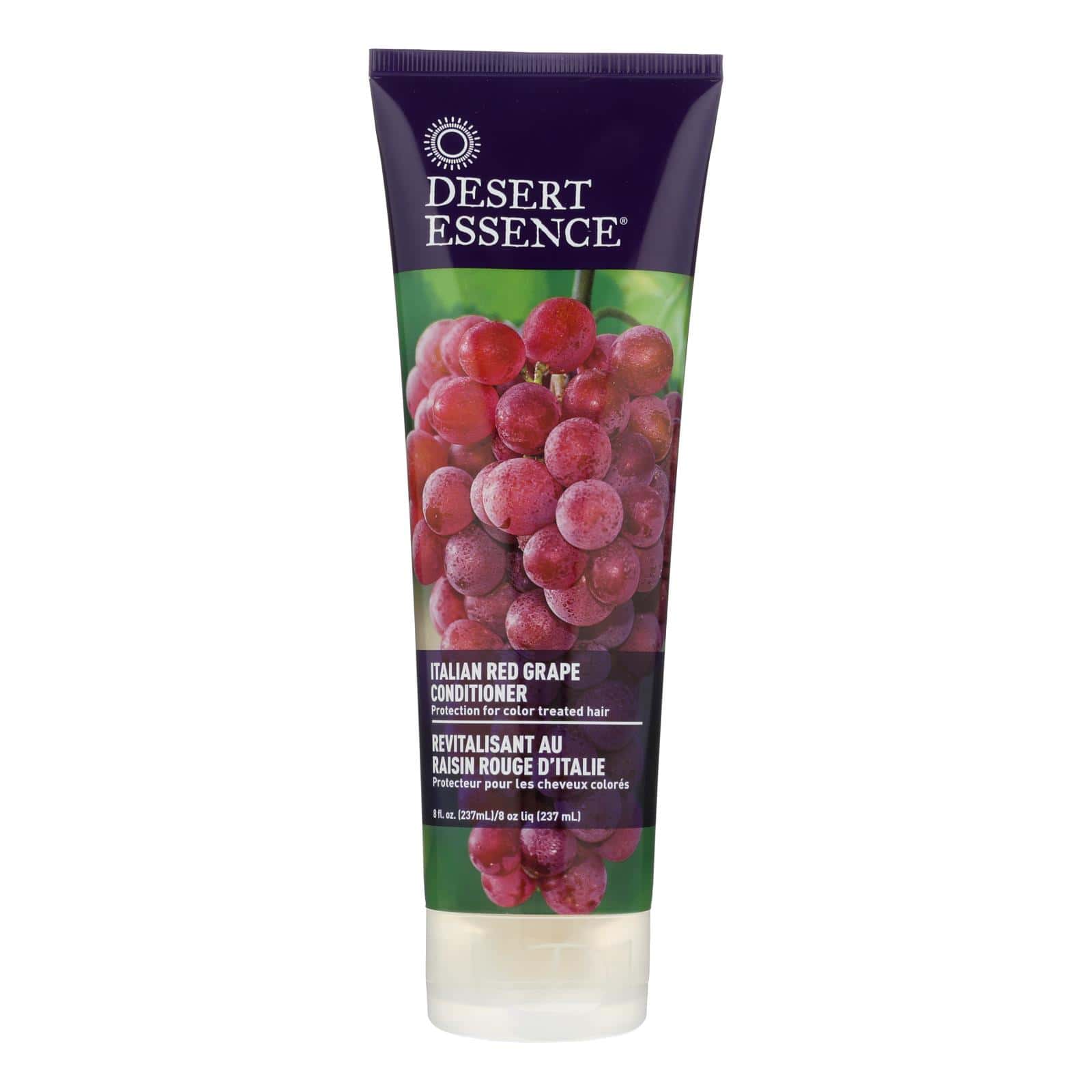 DESERT ESSENCE ITALIAN RED GRAPE CONDITIONER CONTAINS ORGANIC INGREDIENTS INCLUDING ANTIOXIDANTS THAT PROTECT HAIR FROM ENVIRONMENTAL STRESSES. RESVERATROL AND GRAPE SEED EXTRACT FILTER UV RAYS SO HAIR SUFFERS LESS DAMAGE. APPLY A SMALL AMOUNT FROM THIS 8 FL. OZ. TUBE OF 100% VEGAN CONDITIONER TO SMOOTH AND SHIELD YOUR HAIR. BIODEGRADABLE, AND FREE OF ARTIFICIAL COLORS, FRAGRANCES, AND PETROLEUM, THIS HAIR CARE PRODUCT DELIVERS A POWERFUL COMBINATION THAT IS KIND TO YOUR CROWNING GLORY.