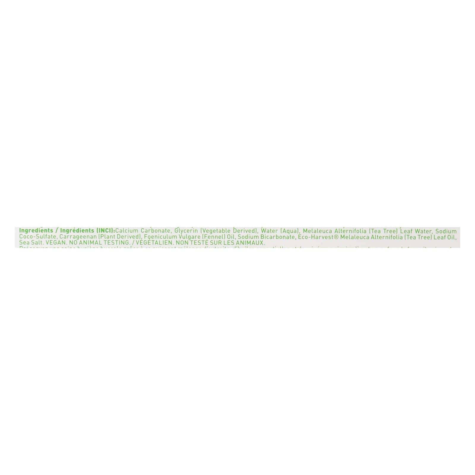 With baking soda & essential oil of fennel. SLS free, gluten free. Desert Essence Tea Tree Oil Dental Care Products are the perfect choice for your oral hygiene routine. They contain no harsh abrasives, sweeteners or artificial flavors. Formulated with simply pure and natural ingredients to keep your mouth feeling fresh and you feeling confident throughout the day. Desert Essence Tea Tree Oil Dental Care Systems include Toothpaste available in four flavors: fennel, ginger, mint and wintergreen with neem; mouthwash, dental floss, and dental tape. No artificial preservatives, sweeteners or coloring. Cruelty free; no animal testing of raw materials or final product. For adults and supervised children 2+ years of age. Vegan. No animal testing. Cruelty-free. www.desertessence.com. Made in the USA.