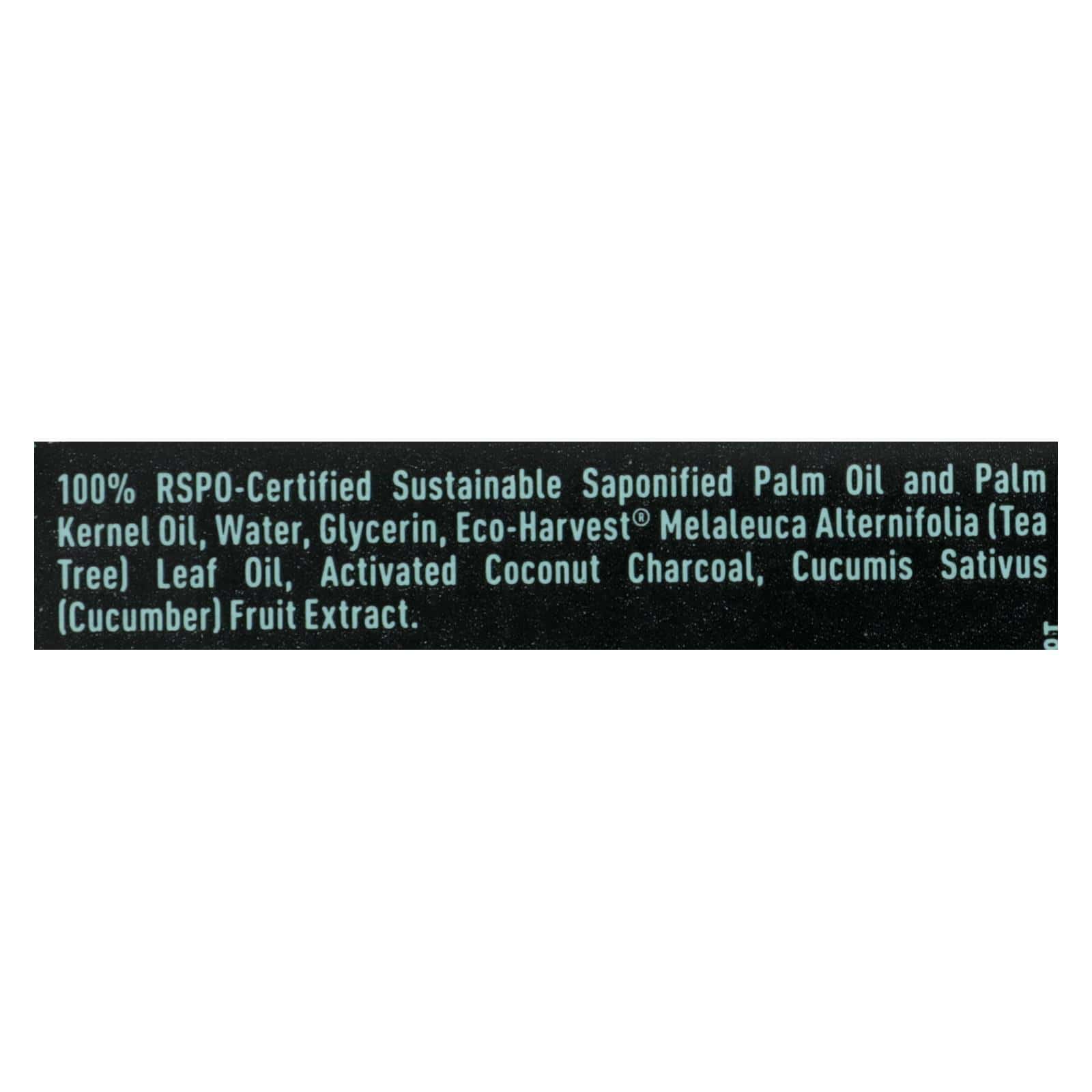 With sustainable palm oil. Non GMO Certified by NSF. www.nsfnongmo.com. Certified Sustainable Palm Oil. RSPO. Draw out impurities, remove excess oil and detoxify with Desert Essence Activated Charcoal Soap Bar. Formulated with Country Life’s Activated Coconut Shell Charcoal, soothing Cucumber and inherently cleansing Eco-Harvest Tea Tree Oil, this gentle but powerful soap bar is perfect for use on face and body. This soap is made using 100% sustainably harvested palm oil, which complies with the standards set by the Roundtable on Sustainable Palm Oil (RSPO). This ensures palm oil is sustainably and responsibly grown and harvested, does not damage plant and animal biodiversity, the livelihood of local communities, and soil’s productivity. Color variation may occur in product due to natural ingredients. Gluten free. Vegan. No: Animal Derived Ingredients, Animal Testing, Parabens, Artificial Fragrances/Dyes, Petroleum Compounds Including Mineral Oil, Petrolatum or Paraffin, SLS, PPG, MEA, DEA, TEA, EDTA, Glycols or Phthalates. www.desertessence.com. Certified B Corporation. Cruelty free. Made in the USA with globally sourced ingredients.