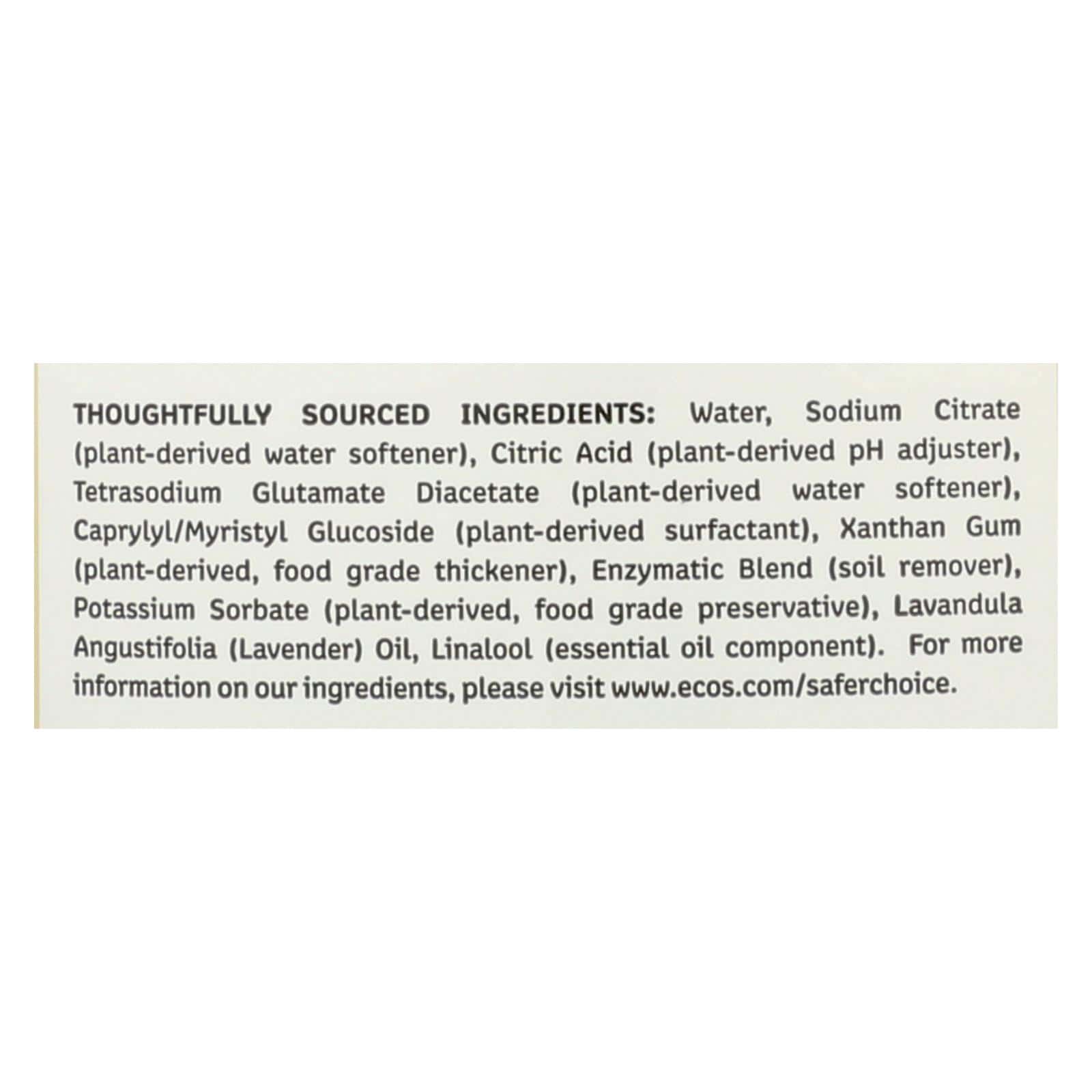 ECOS AUTOMATIC DISHWASHER GEL, LAVENDER IS EXTRAORDINARILY EFFECTIVE AT CLEANING TABLEWARE AND KITCHEN TOOLS WITHOUT ETCHING. PLANT POWER WASHES AWAY RESIDUES AND LEAVES AN ETCH-FREE SHINE. THIS GEL COMES IN A 40 FL. OZ. BOTTLE AND IS MADE WITHOUT DYES, PARABENS, PHOSPHATES, AND PHTHALATES. IT?S READILY BIODEGRADABLE, PH BALANCED AND NEVER TESTED ON ANIMALS. SEE THE FACTS PANEL FOR ALLERGENS AND WARNINGS.