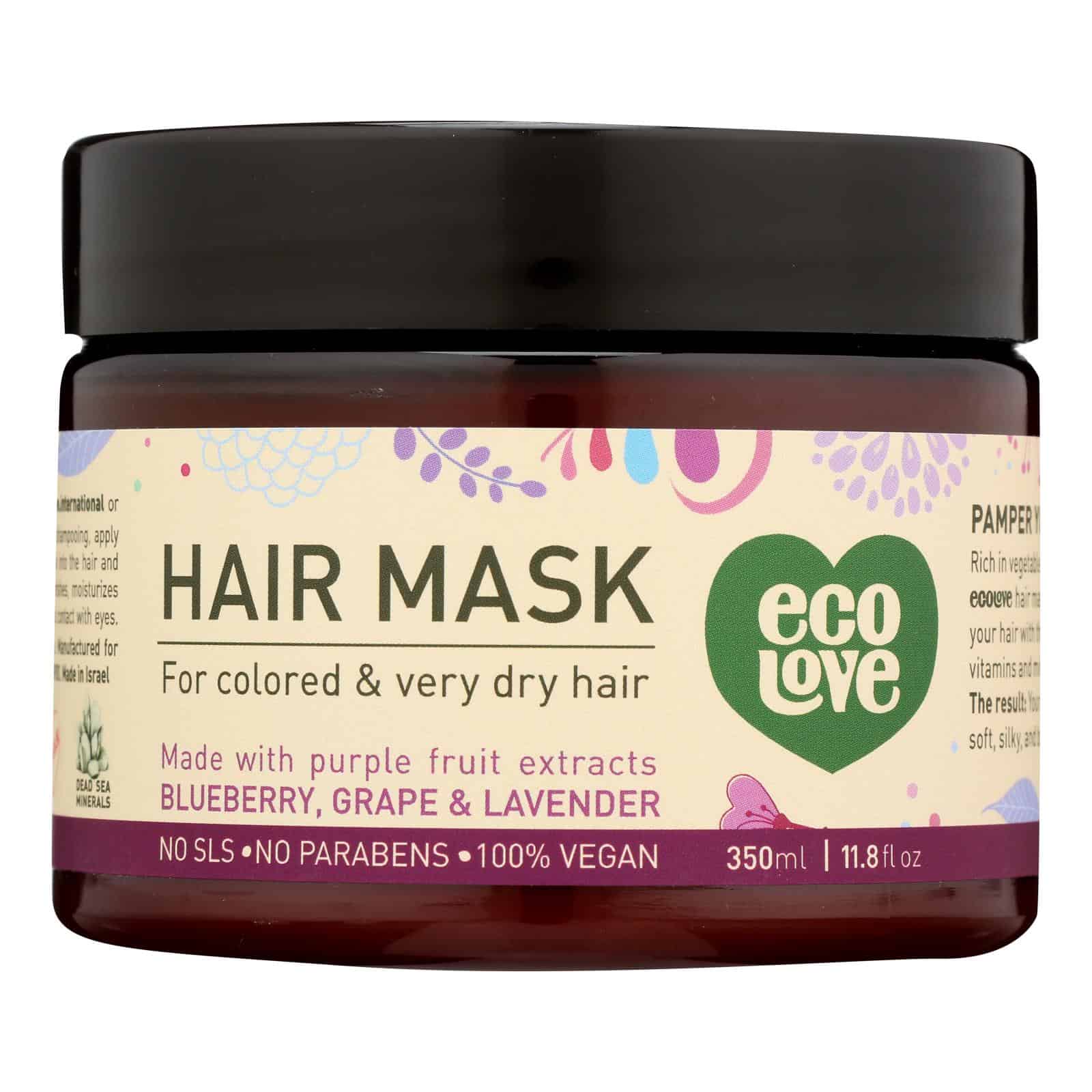 ECO LOVE HAIR MASK IS INFUSED WITH ESSENTIAL VITAMINS AND MINERALS TO MOISTURIZE AND SOFTEN YOUR HAIR. CRAFTED WITH ORGANIC PURPLE FRUIT EXTRACTS, THIS 11.8 FL. OZ. CONTAINER OF HAIR MASK FEATURES NATURAL INGREDIENTS AND DEAD SEA MINERALS FOR A DEEP, ROBUST CONDITIONING SUITABLE FOR COLORED AND VERY DRY HAIR.