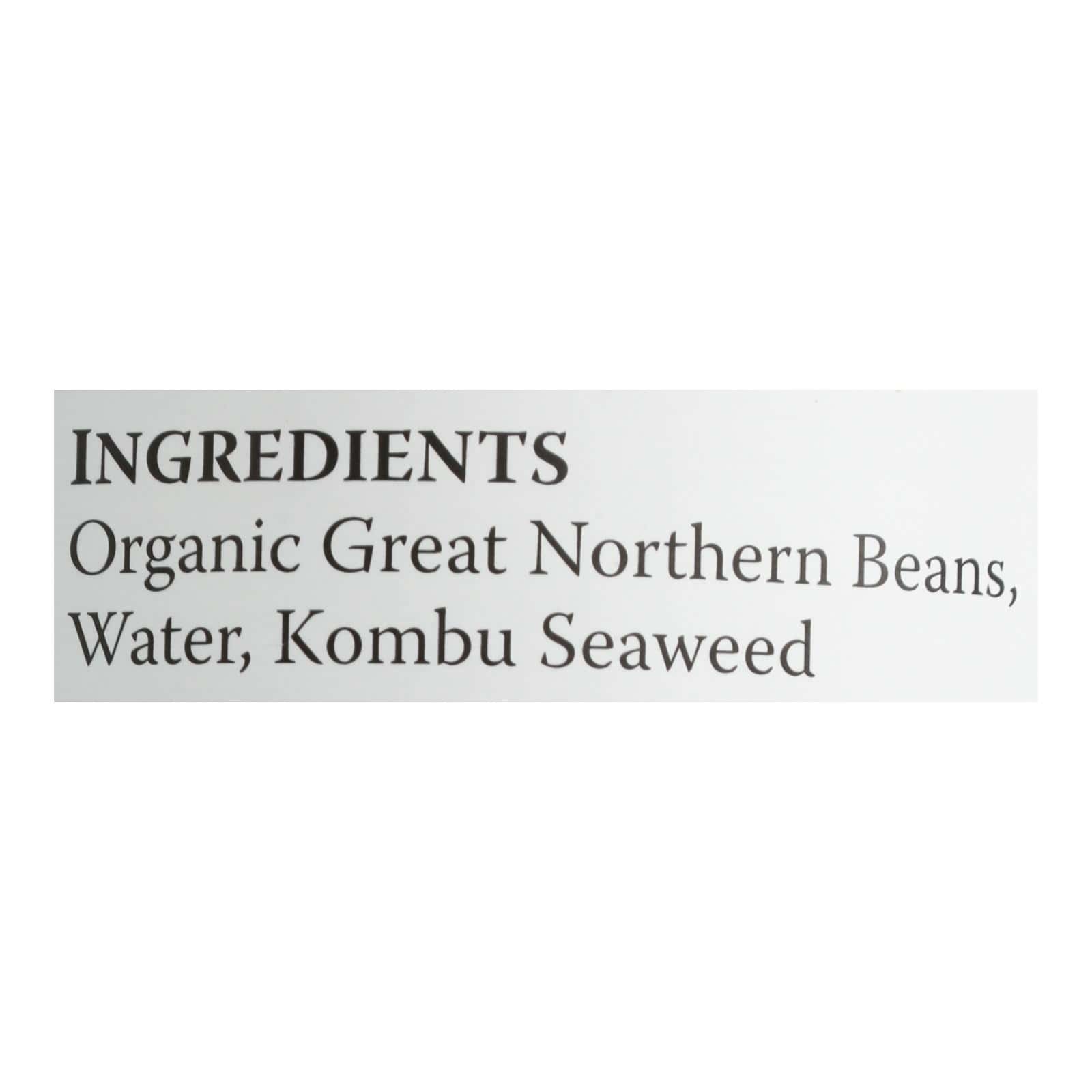 EDEN ORGANIC NO SALT ADDED GREAT NORTHERN BEANS OFFERS THE SUBTLE SAVORY FLAVOR OF HERITAGE WHITE BEANS GROWN BY FAMILY FARMS IN THE USA. EACH CAN INCLUDES WATER AND KOMBU SEAWEED TO ADD TASTE WITHOUT ADDING ADDITIONAL SALT. ONE HALF-CUP SERVING HAS 110 CALORIES AND 5 G. OF PROTEIN. USE IN SOUPS, SALADS OR IN PASTA FOR A DOSE OF DIETARY FIBER. THIS CAN CONTAINS 15 OZ. OF GREAT NORTHERN BEANS.