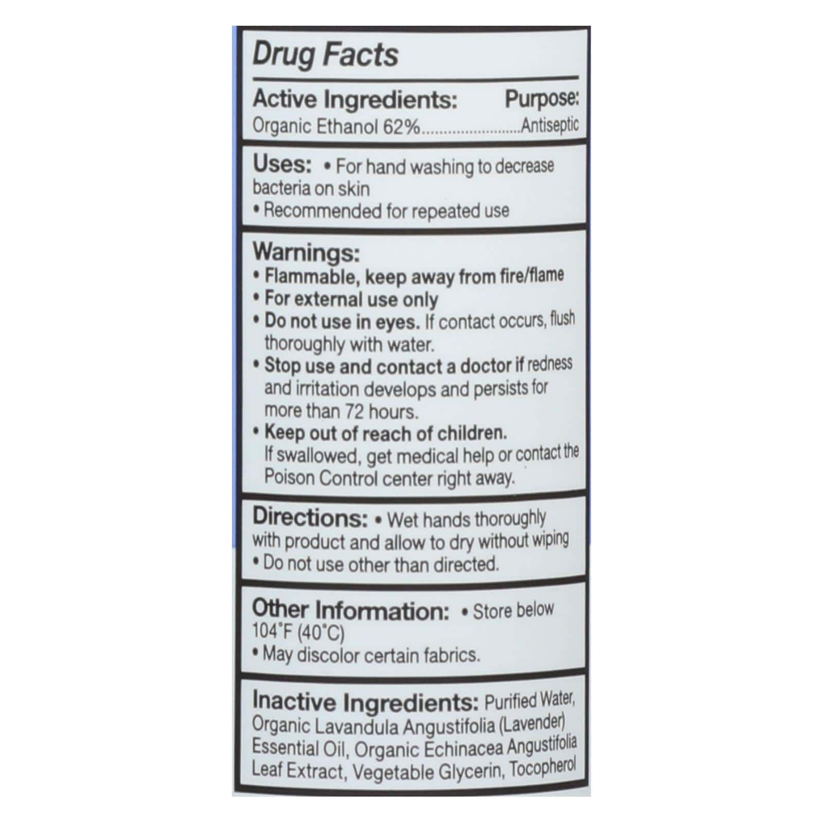 EO HAND SANITIZER SPRAY, LAVENDER IS MADE WITH NATURAL INGREDIENTS. AS THE SCENT OF PURE LAVENDER ESSENTIAL OIL RELAXES YOUR SENSES, LET VEGETABLE GLYCERIN SOFTEN AND MOISTURIZE YOUR HANDS WHILE ORGANIC ETHANOL HELPS KEEP YOU CLEAN AND HAPPY WITHOUT TRICLOSAN, PHTHALATES, OR DISODIUM EDTA. BE RELAXED AND DISCOVER YOUR NATURAL BEAUTY. THERE ARE 2 FL. OZ. IN EACH BOTTLE.