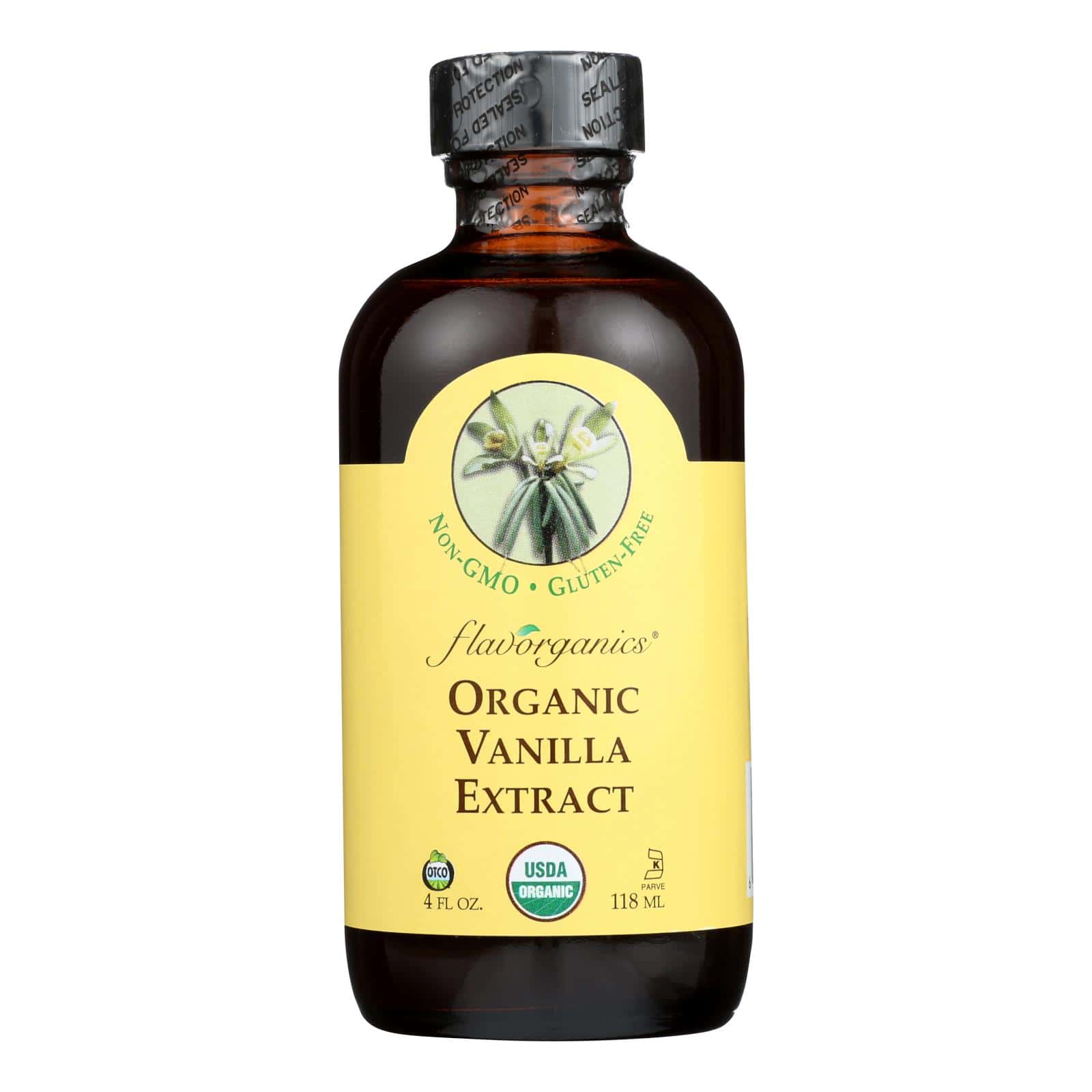 FLAVORGANICS ORGANIC VANILLA EXTRACT ADDS A DELIGHTFUL FLAVOR TO ALL OF YOUR COOKIES, CAKES, TREATS, SYRUPS, MUFFINS, SWEET BREADS, BEVERAGES AND MORE. THIS ORGANIC VANILLA EXTRACT IS GLUTEN-FREE, KOSHER AND NON-GMO. EACH BOTTLE OF FLAVORGANICS ORGANIC VANILLA EXTRACT CONTAINS 4 FL. OZ. OF PRODUCT.