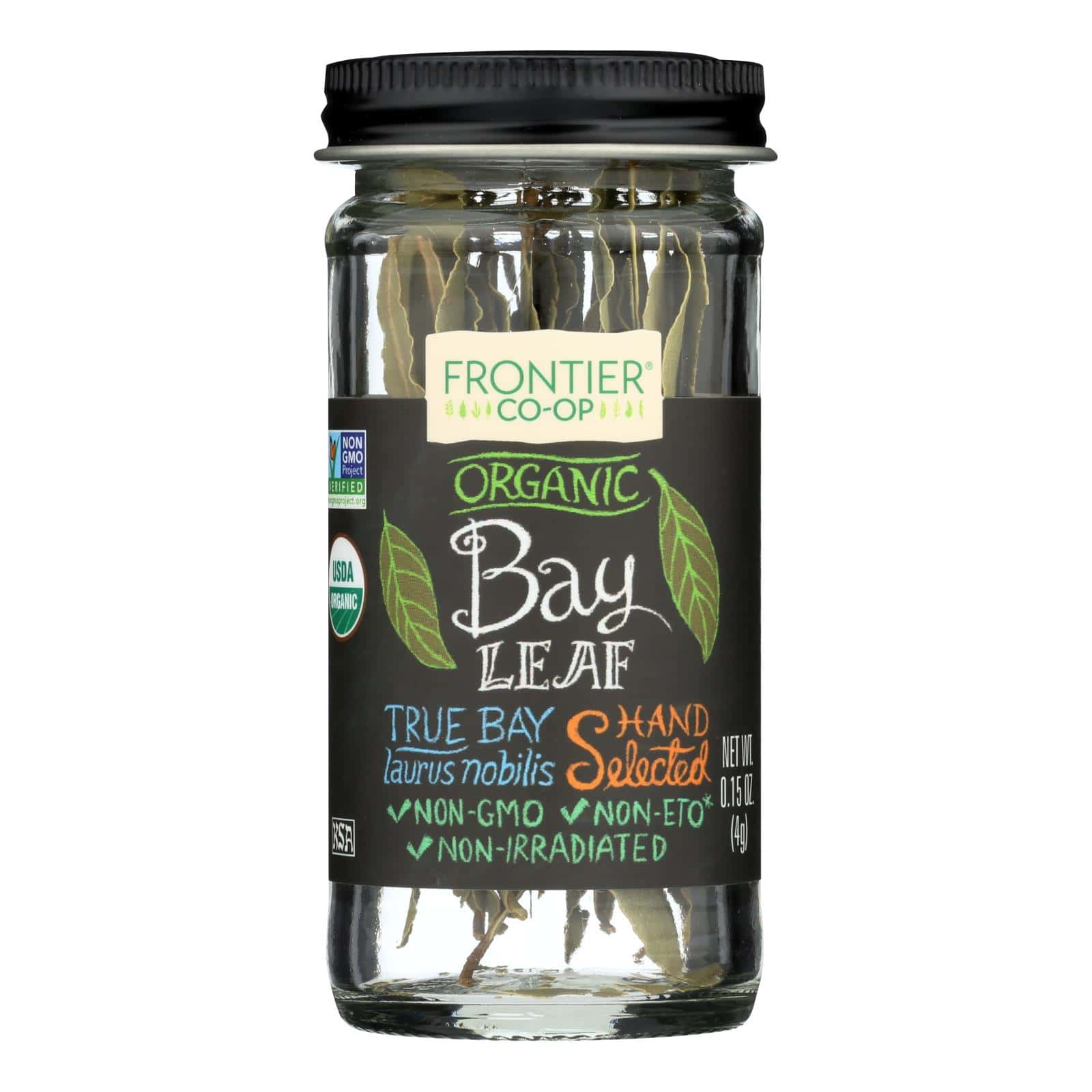 FRONTIER CO-OP CERTIFIED ORGANIC BAY LEAF, WHOLE IS A NATURAL, DELICIOUS AND CONVENIENT ADDITION TO A VARIETY OF RECIPES. WITH 100% NATURAL BAY LEAF AS THE SOLE INGREDIENT, THIS FINE HERB IS FREE OF UNNATURAL AND UNNECESSARY ADDITIVES. THIS PRODUCT IS KOSHER AND NON-GMO. EACH JAR OF FRONTIER CO-OP CERTIFIED ORGANIC BAY LEAF, WHOLE CONTAINS 0.15 OZ. OF BAY.
