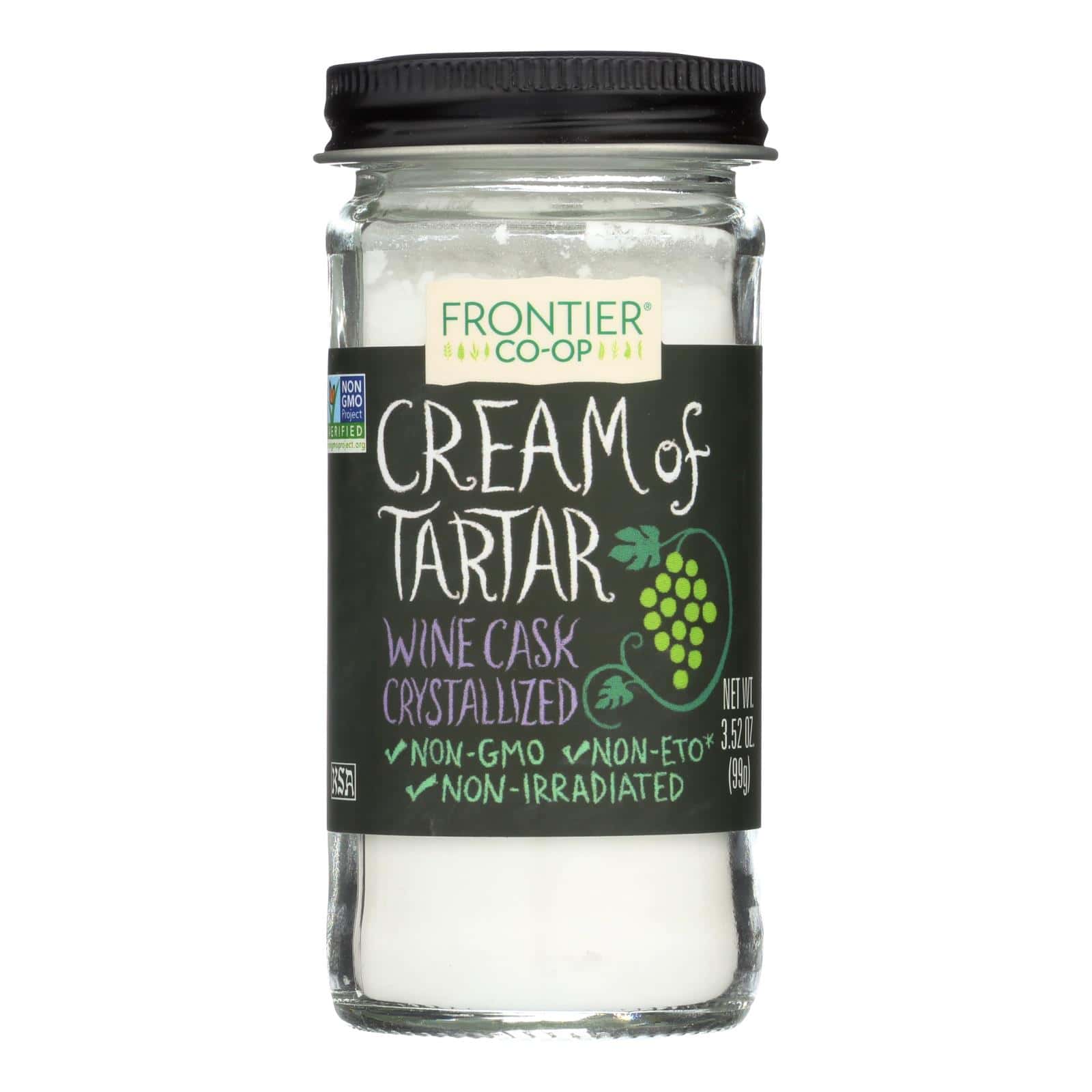 FRONTIER CO-OP CREAM OF TARTAR, POWDER IS NEVER TESTED ON ANIMALS. THIS PRODUCT IS AN INDISPENSABLE INGREDIENT IN BAKING AND ACTS AS A LEAVENING AGENT IN CAKES, QUICK BREADS AND SOUFFLES WHEN COMBINED WITH BAKING SODA AND WATER. FRONTIER CO-OP CREAM OF TARTAR, POWDER ALSO AIDS IN STIFFENING EGG WHITES BY ADDING JUST A PINCH OF THIS PRODUCT WHILE BEATING. THIS PRODUCT IS WINE CASK CRYSTALLIZED, CERTIFIED KOSHER, AND NON-GMO. FRONTIER CO-OP CREAM OF TARTAR, POWDER IS PACKAGED FOR YOUR CONVENIENCE IN AN EASY-TO-OPEN JAR AND CONTAINS 3.52 OZ. OF PRODUCT.