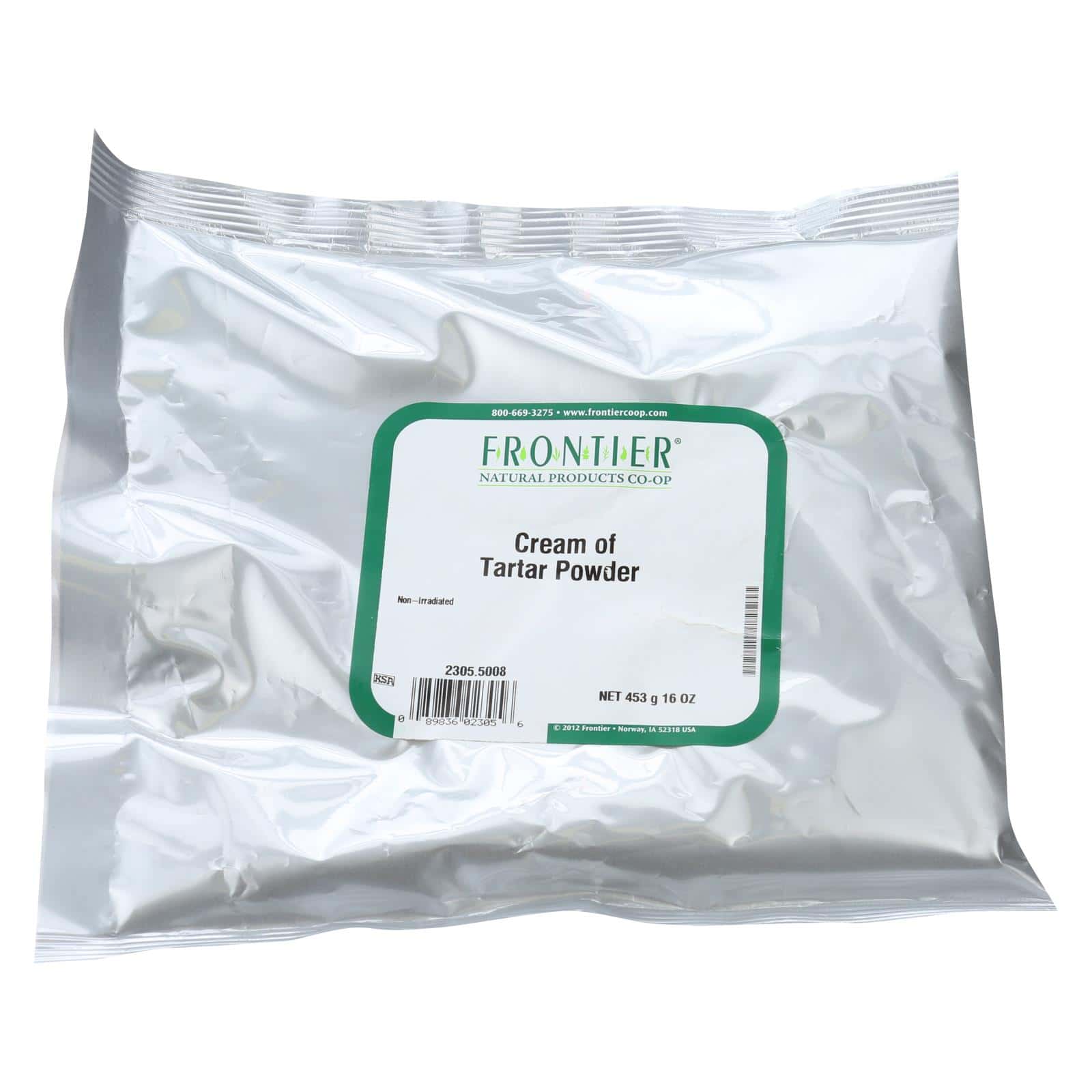 FRONTIER NATURAL PRODUCTS CO-OP CREAM OF TARTAR POWDER ADDS VOLUME AND THICKNESS TO YOUR BAKING AND HELPS HARDEN EGG WHITES WHILE INCREASING THEIR HEAT TOLERANCE. OUR CREAM OF TARTAR ENSURES YOUR SUGAR SYRUPS DON’T CRYSTALLIZE AND ALSO MAINTAINS THE COLOR VIBRANCY OF YOUR BOILED VEGETABLES. THIS PACKAGE COMES WITH 16 OZ. OF CREAM OF TARTAR POWDER.