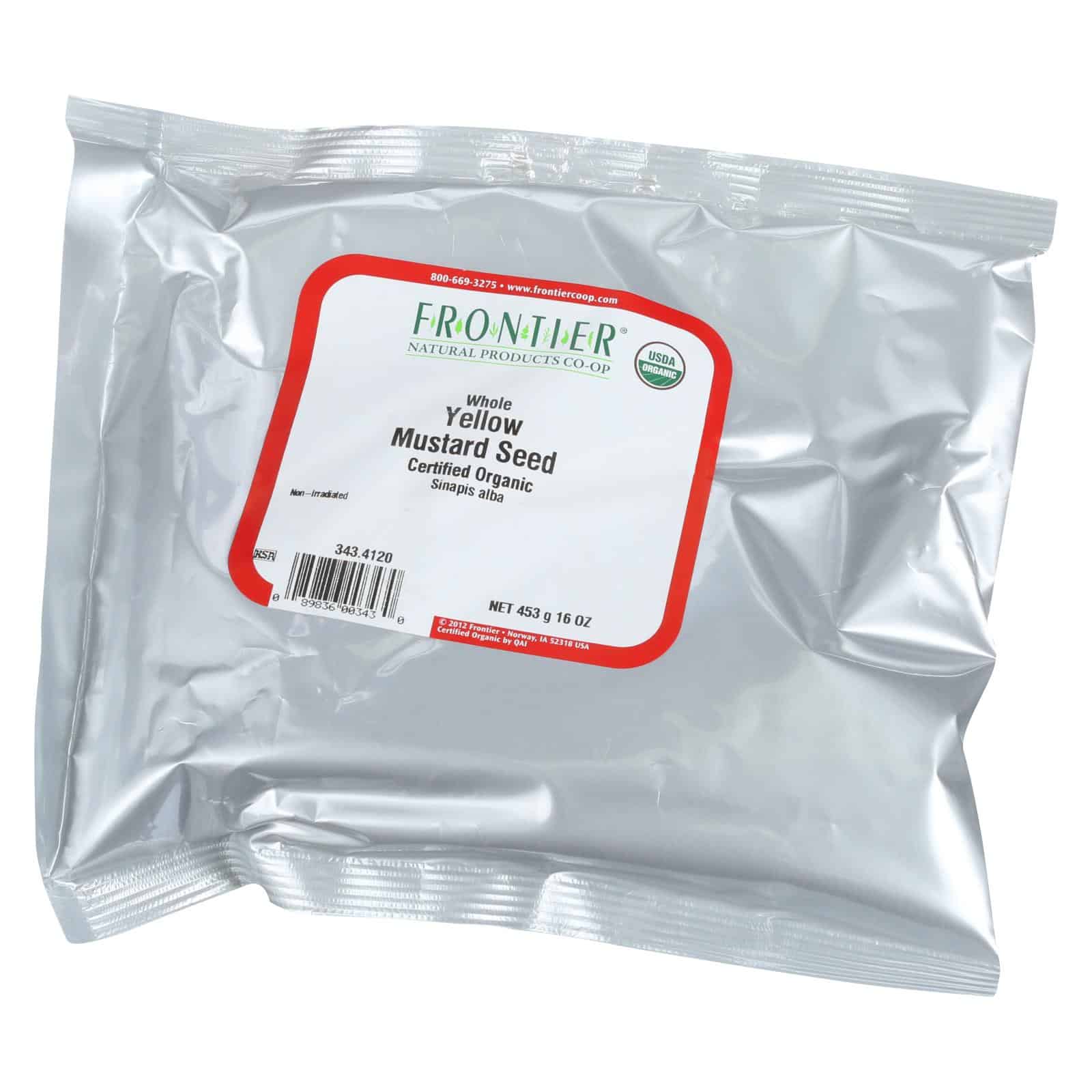 FRONTIER NATURAL PRODUCTS CO-OP WHOLE YELLOW MUSTARD SEED IS A NATURAL INGREDIENT THAT IS USEFUL FOR PICKLING OR GRINDING FOR A SPICY AND PUNGENT FLAVOR. THE SEEDS IN THIS 16 OZ. POUCH ARE MILDER THAN BROWN SEEDS BUT INTERCHANGE BEAUTIFULLY WHEN YOU CRUSH THEM TO CREATE YOUR FAVORITE SANDWICH SPREAD OR RECIPE SPICE.