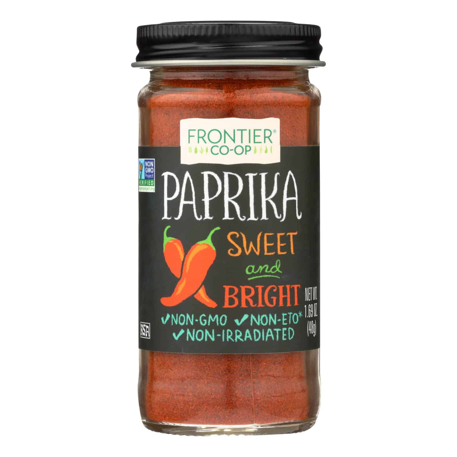 FRONTIER CO-OP PAPRIKA GROUND IS NEVER TESTED ON ANIMALS. THIS PRODUCT HAS A SWEET AND BRIGHT FLAVOR AND IS GREAT FOR USE IN MAIN DISHES, APPETIZERS, AND TREATS. FRONTIER CO-OP PAPRIKA GROUND CAN BE USED IN A VARIETY OF DELICIOUS DISHES AS WELL AS SAUCES FOR BOTH PIZZA AND PASTAS. THIS PRODUCT COMES PACKAGED FOR YOUR CONVENIENCE IN A RESEALABLE, EASY-TO-OPEN BOTTLE AND CONTAINS 1.69 OZ. OF PRODUCT. FRONTIER CO-OP PAPRIKA GROUND ARE ALSO KOSHER AND NON-GMO. FRONTIER CO-OP IS COMMITTED TO QUALITY, SUSTAINABILITY, AND ETHICAL TRADE.