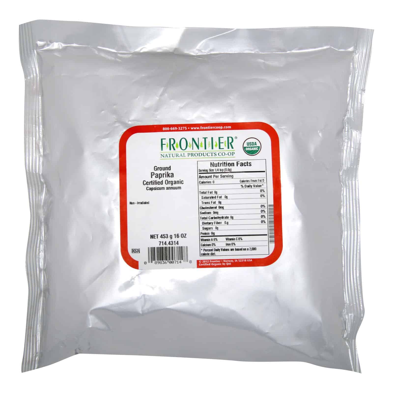 FRONTIER NATURAL PRODUCTS CO-OP CERTIFIED ORGANIC GROUND PAPRIKA IS THE PERFECT ADDITION TO A CHICKEN OR FISH MARINADE OR AS THE TOPPING FOR DEVILED EGGS OR POTATO SALADS. MADE FROM DRIED GROUND CHILES, OUR PAPRIKA CONTAINS 0 CALORIES PER SERVING SO YOU CAN GENEROUSLY POUR IT ON YOUR FAVORITE FOODS. THIS PACKAGE CONTAINS 16 OZ. OF GROUND PAPRIKA.