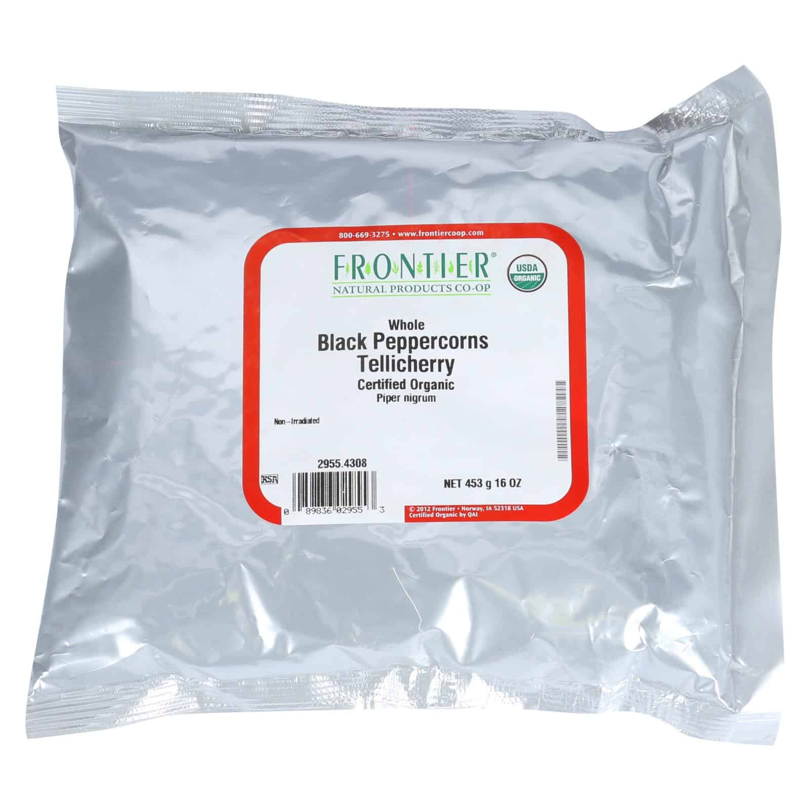 FRONTIER CO-OP ORGANIC TELLICHERRY WHOLE BLACK PEPPERCORNS ARE CHOSEN FROM THE PLUMPEST BERRIES TO DELIVER THE HIGHEST-QUALITY BLACK PEPPERCORNS AVAILABLE. FILL YOUR PEPPER GRINDER WITH THESE PEPPERCORNS TO SPRINKLE OVER SALADS OR SEASON STEAKS AND OTHER CUTS OF MEAT PRIOR TO GRILLING. EACH 1 LB. PACKAGE OF TELLICHERRY WHOLE BLACK PEPPERCORNS IS NON-IRRADIATED FOR ENHANCED FOOD SAFETY.