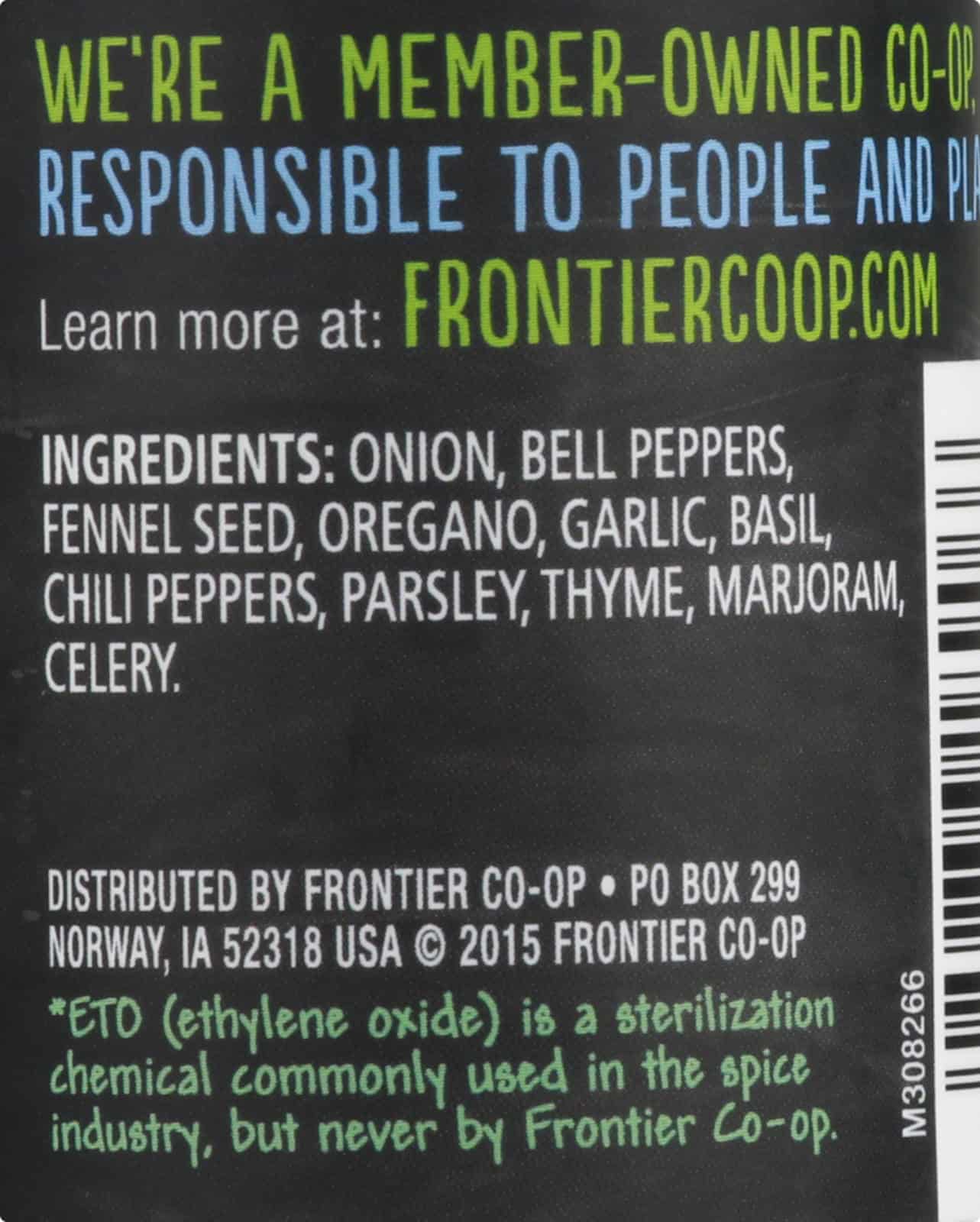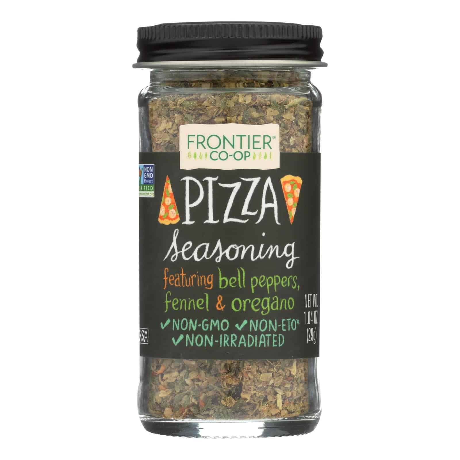 FRONTIER CO-OP PIZZA SEASONING BLEND IS NEVER TESTED ON ANIMALS. THIS PRODUCT FEATURES BELL PEPPERS, FENNEL AND OREGANO, GIVING YOU THAT PARLOR-LIKE TASTE THAT YOU?VE BEEN MISSING. FRONTIER CO-OP PIZZA SEASONING BLEND COMES PACKAGED FOR YOUR CONVENIENCE IN AN EASY-TO-OPEN JAR AND CONTAINS 1.04 OZ. OF PRODUCT. THIS PRODUCT NON-GMO PROJECT VERIFIED AND CONSIDERED KOSHER.