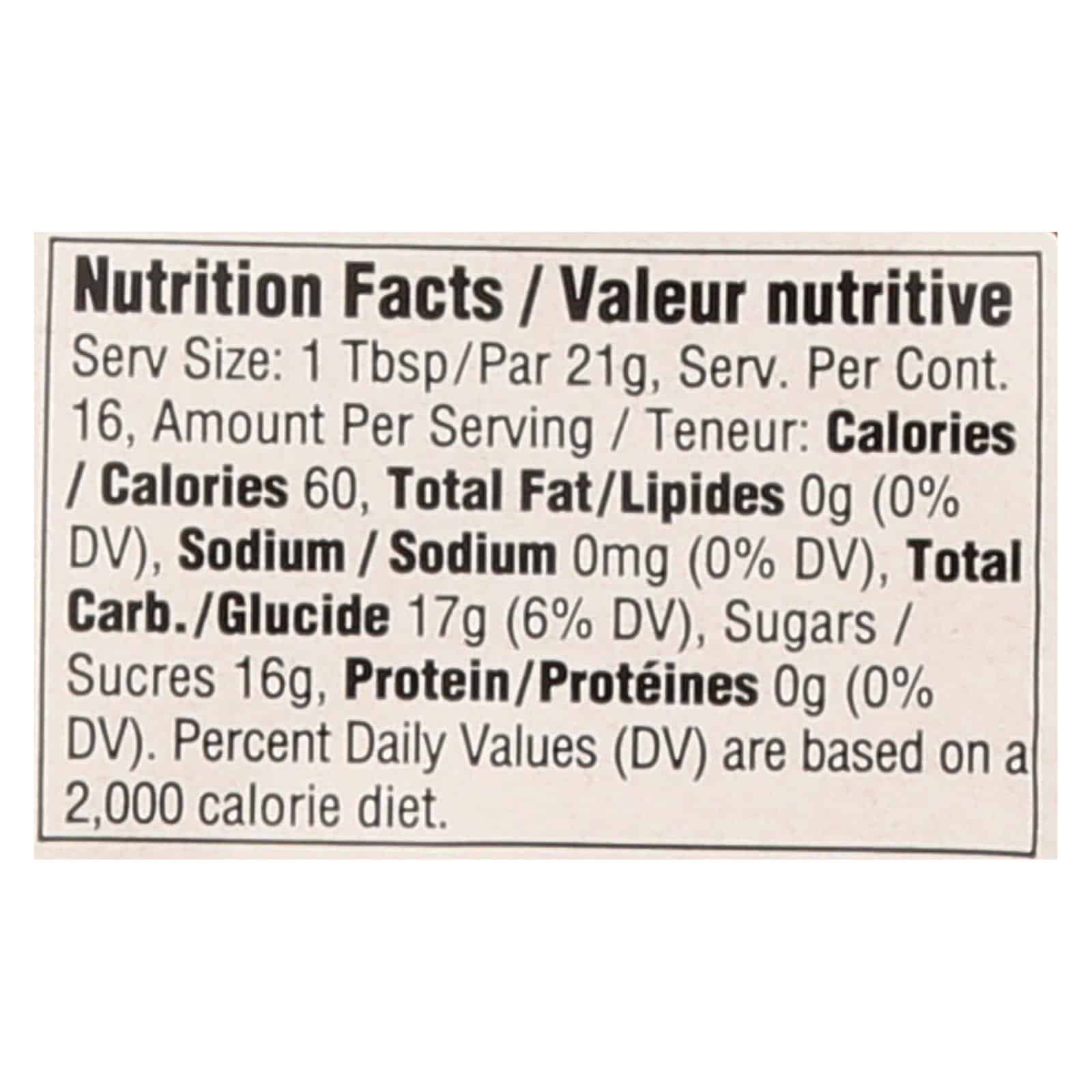 GEFEN HONEY BEAR IS A CERTIFIED KOSHER-PARVE PRODUCT. THIS 100% PURE CLOVER HONEY COMES IN ONE 12 OZ. BEAR BOTTLE AND IS A PRODUCT OF THE UNITED STATES, CANADA AND ARGENTINA. THIS HONEY CONTAINS 0 G. OF FAT, SODIUM AND PROTEIN, AND EACH SERVING HAS 60 CALORIES, 17 G. OF CARBOHYDRATES AND 16 G. OF SUGARS.